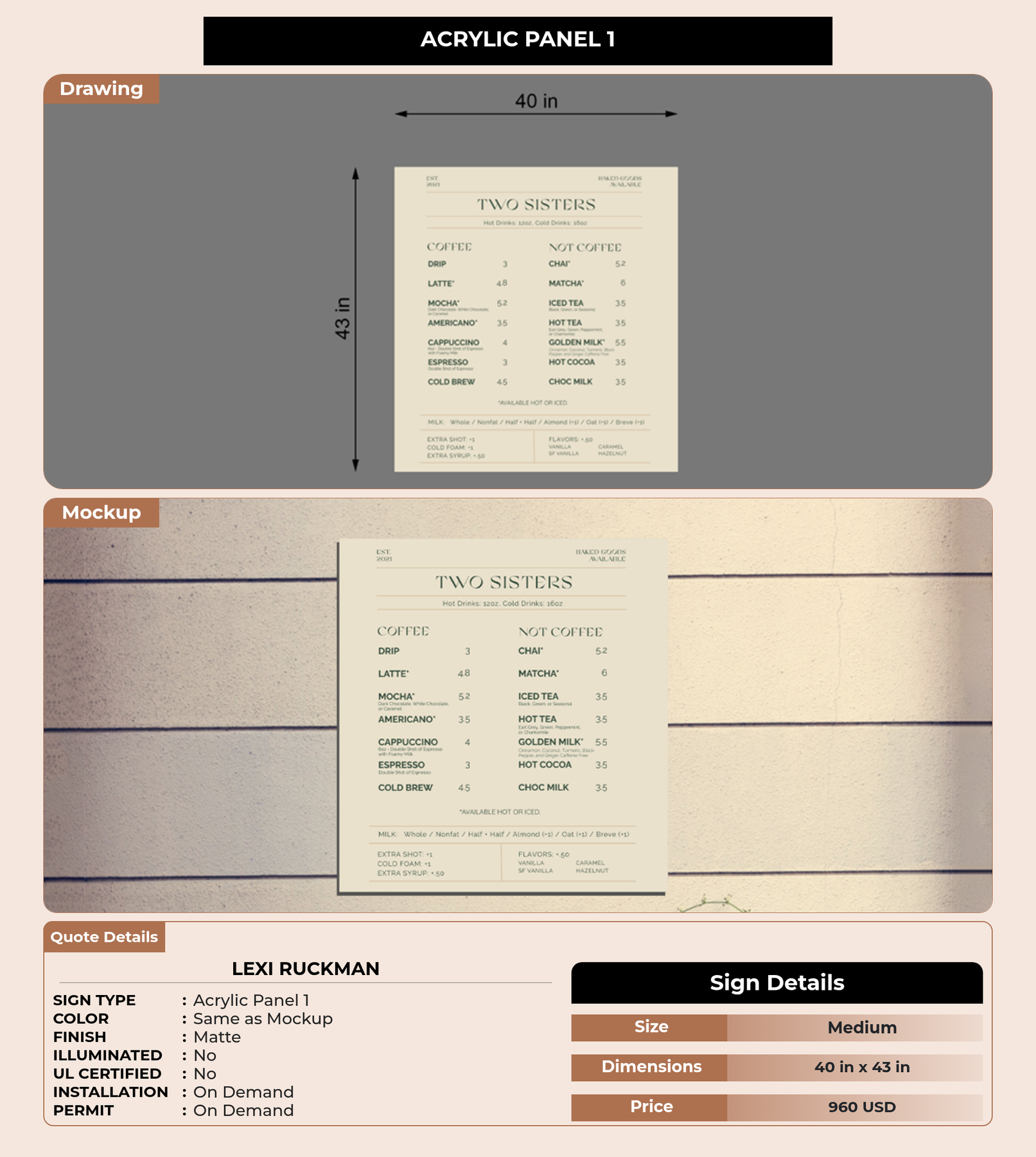 Enhance your business presence with our expertly crafted signage, made from top-quality material, to ensure longevity and durability. Fully customizable to reflect your unique brand identity, our signage offers a professional and polished appearance. Easy to install and low maintenance, it’s the perfect addition to any business setting. Trust us to deliver a product that not only meets but exceeds your expectations.