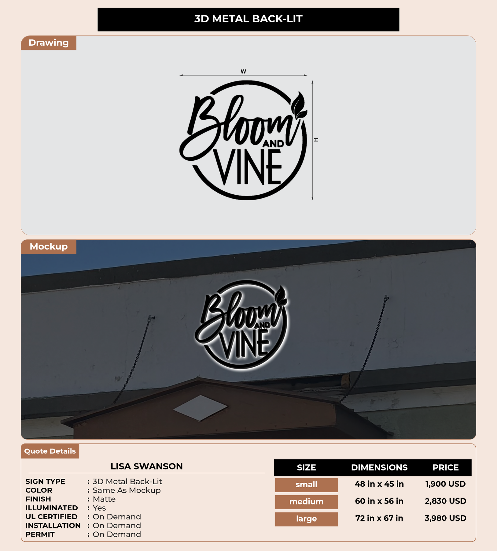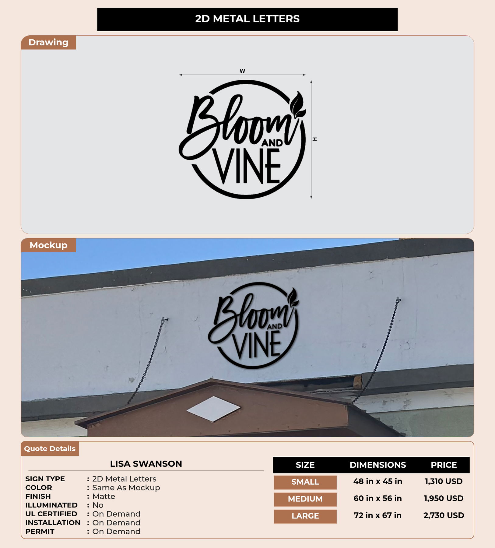 Eye-catching custom 3D sign for Lisa Swanson