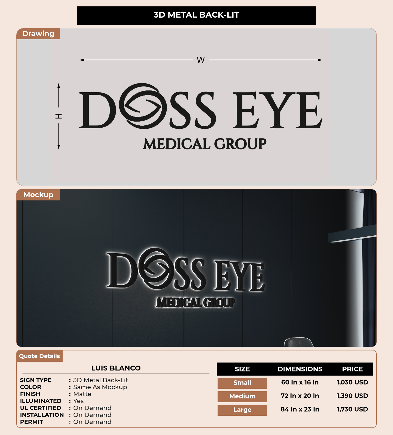 Eye-catching custom 3D sign for Luis Blanco