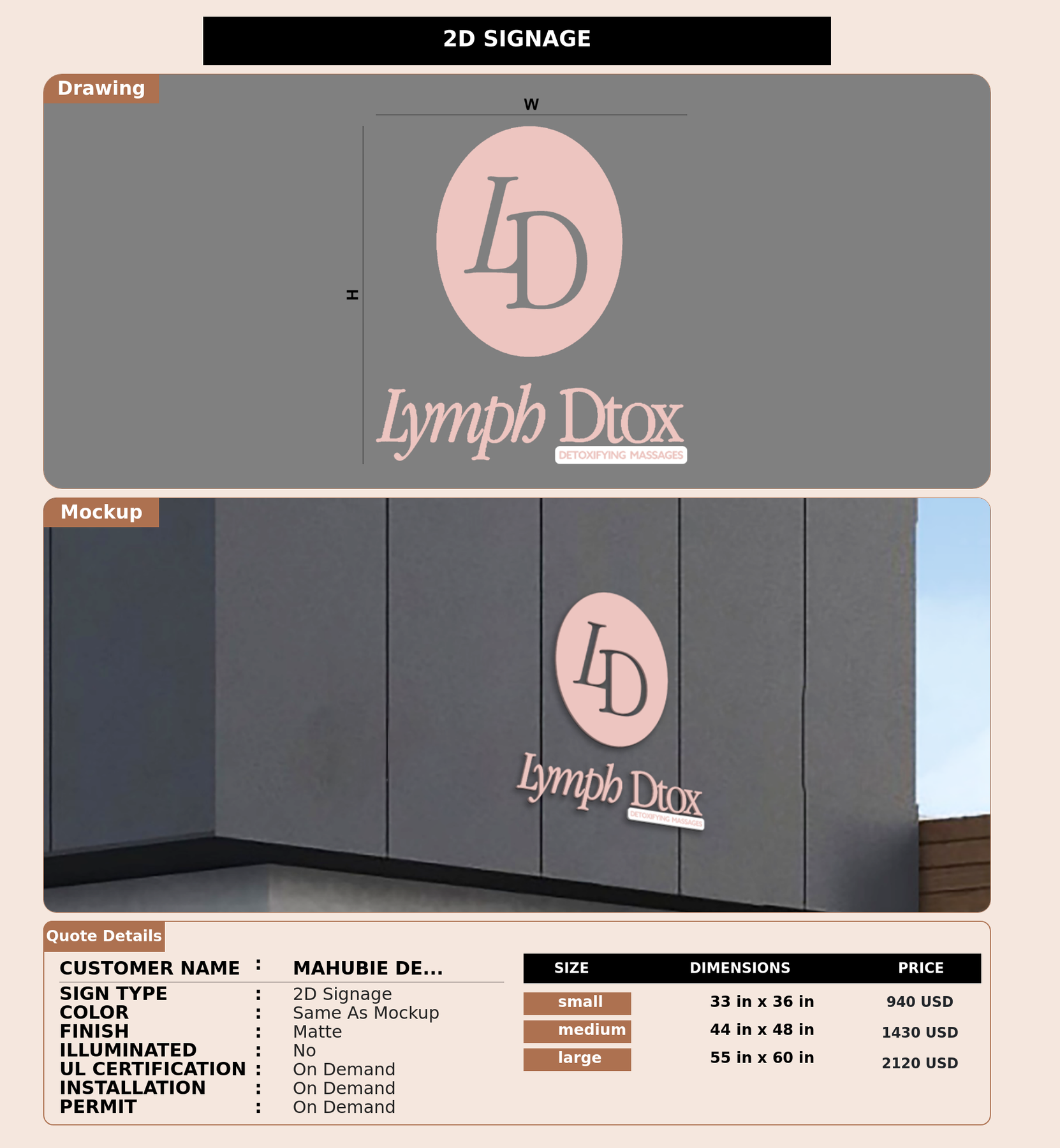 Installation services are available for an additional fee, depending on your location and the complexity of the signage.