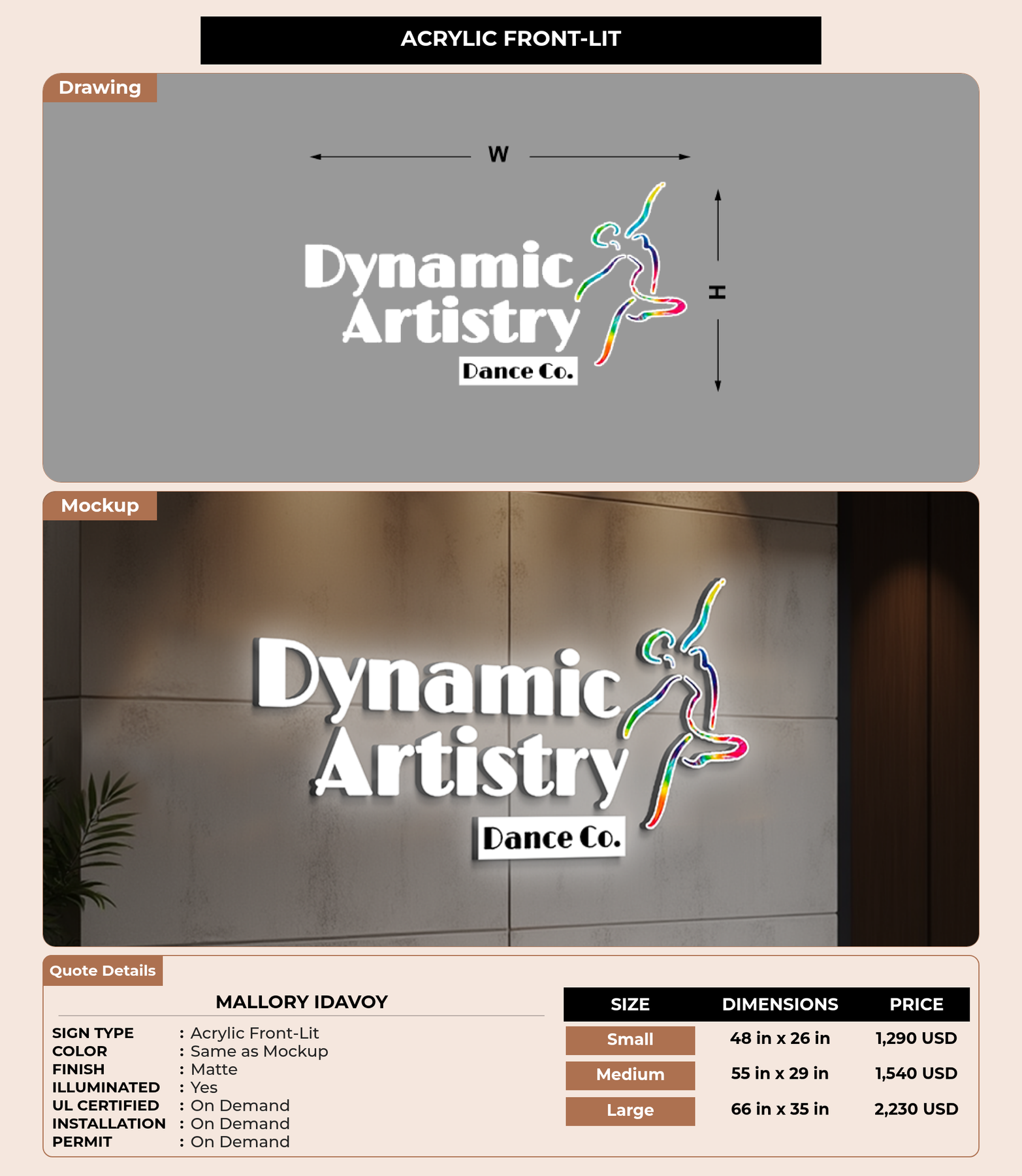 Enhance your business presence with our expertly crafted signage, made from top-quality material, to ensure longevity and durability. Fully customizable to reflect your unique brand identity, our signage offers a professional and polished appearance. Easy to install and low maintenance, it’s the perfect addition to any business setting. Trust us to deliver a product that not only meets but exceeds your expectations.