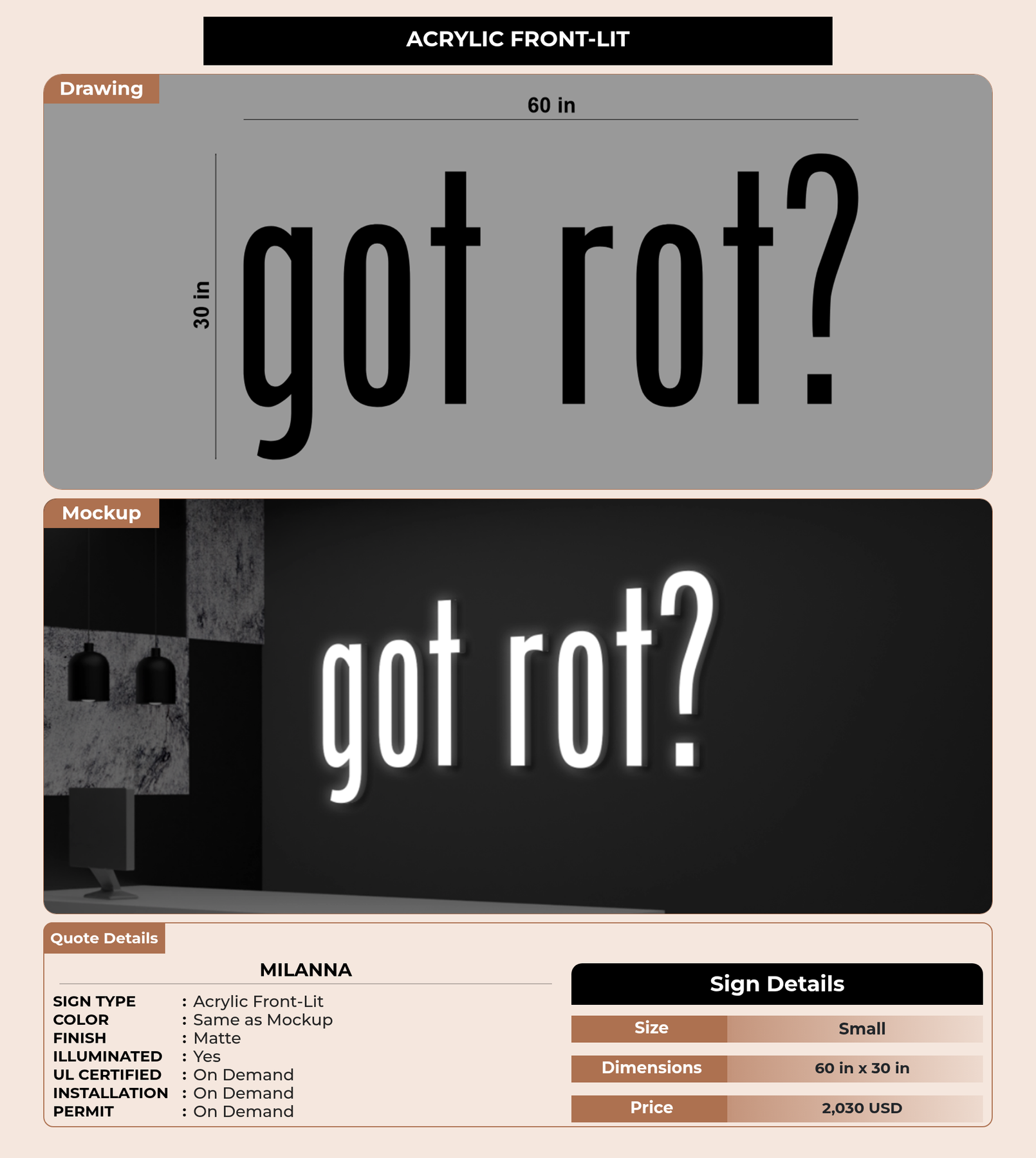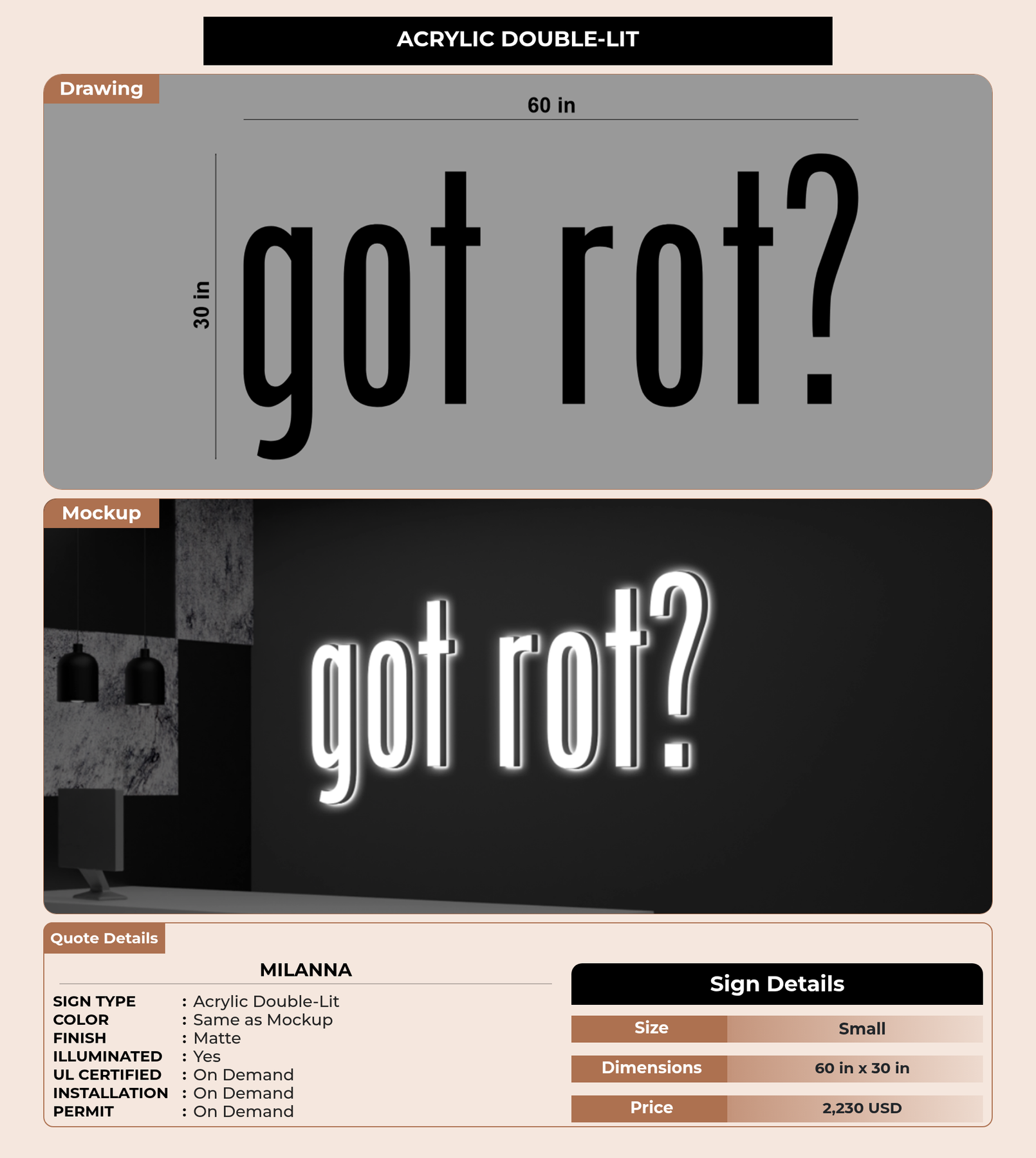 Eye-catching custom 3D sign for Milanna