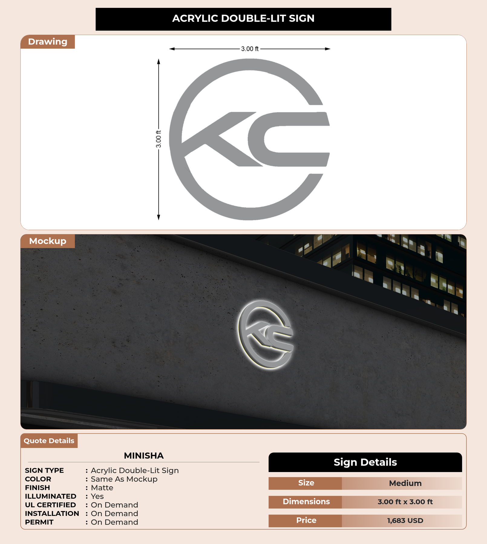 Crafted with premium material, this signage will elevate your business image, precisely mirroring your logo for a professional look.