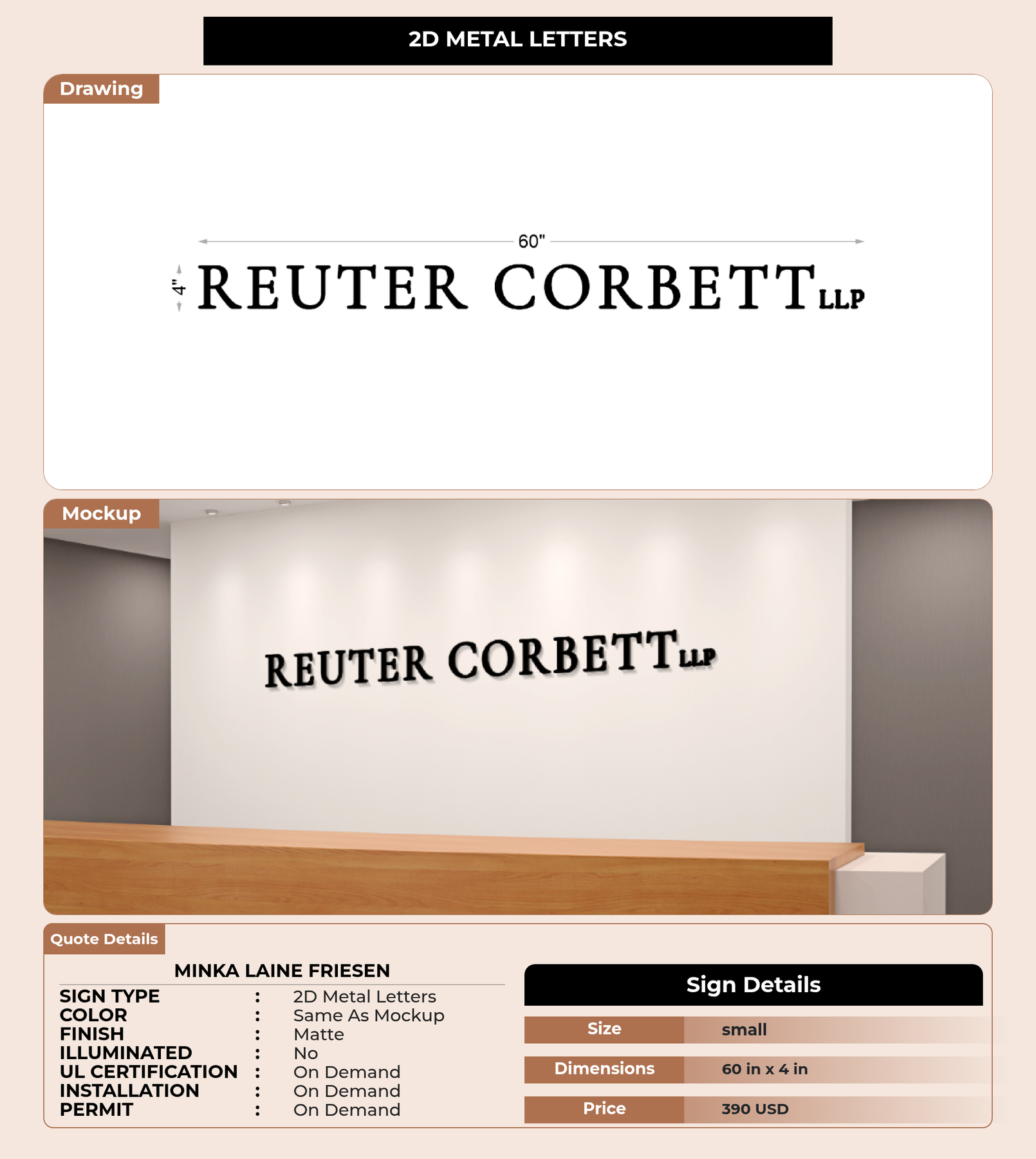 Crafted with premium material, this signage will elevate your business image, precisely mirroring your logo for a professional look.