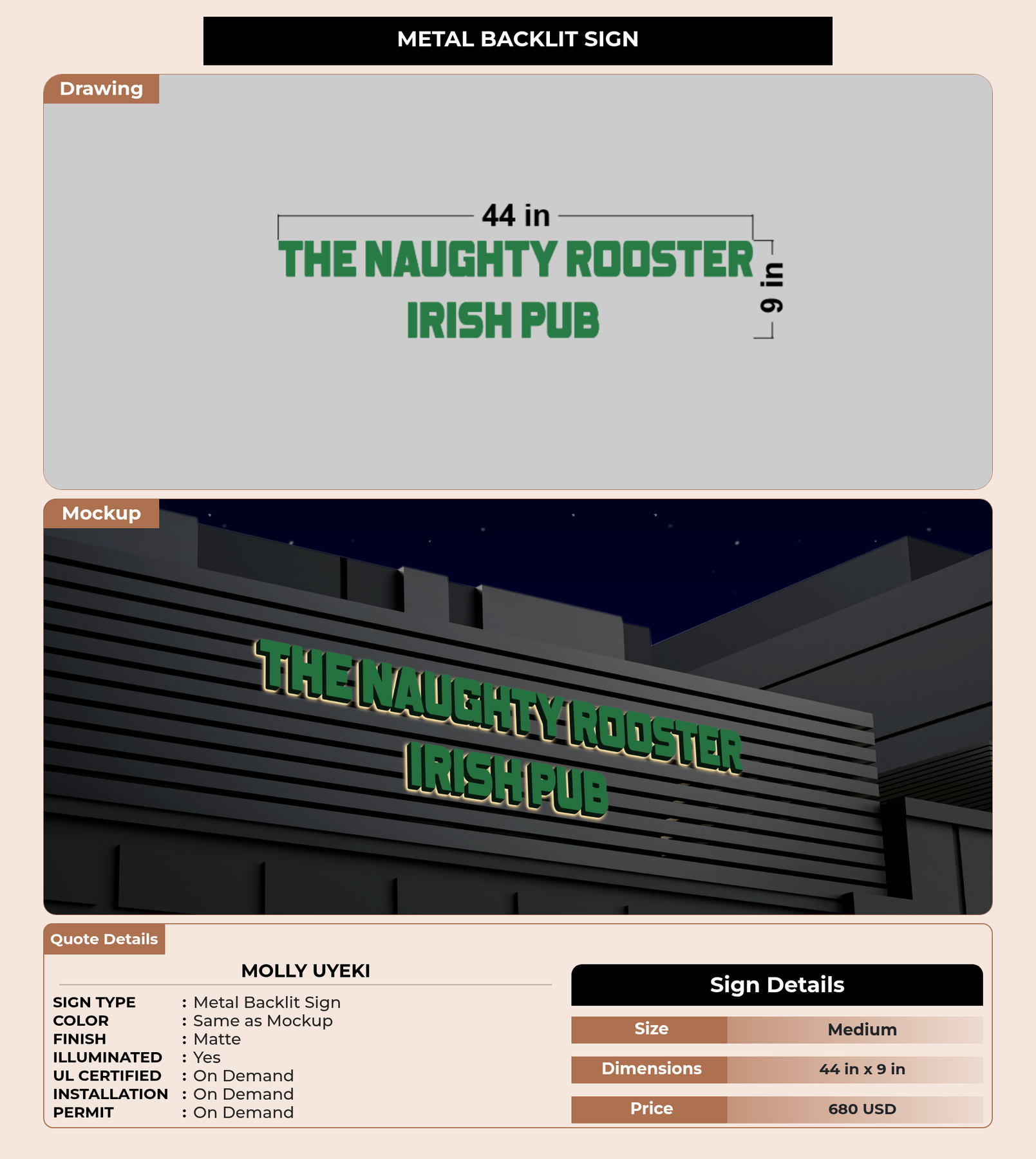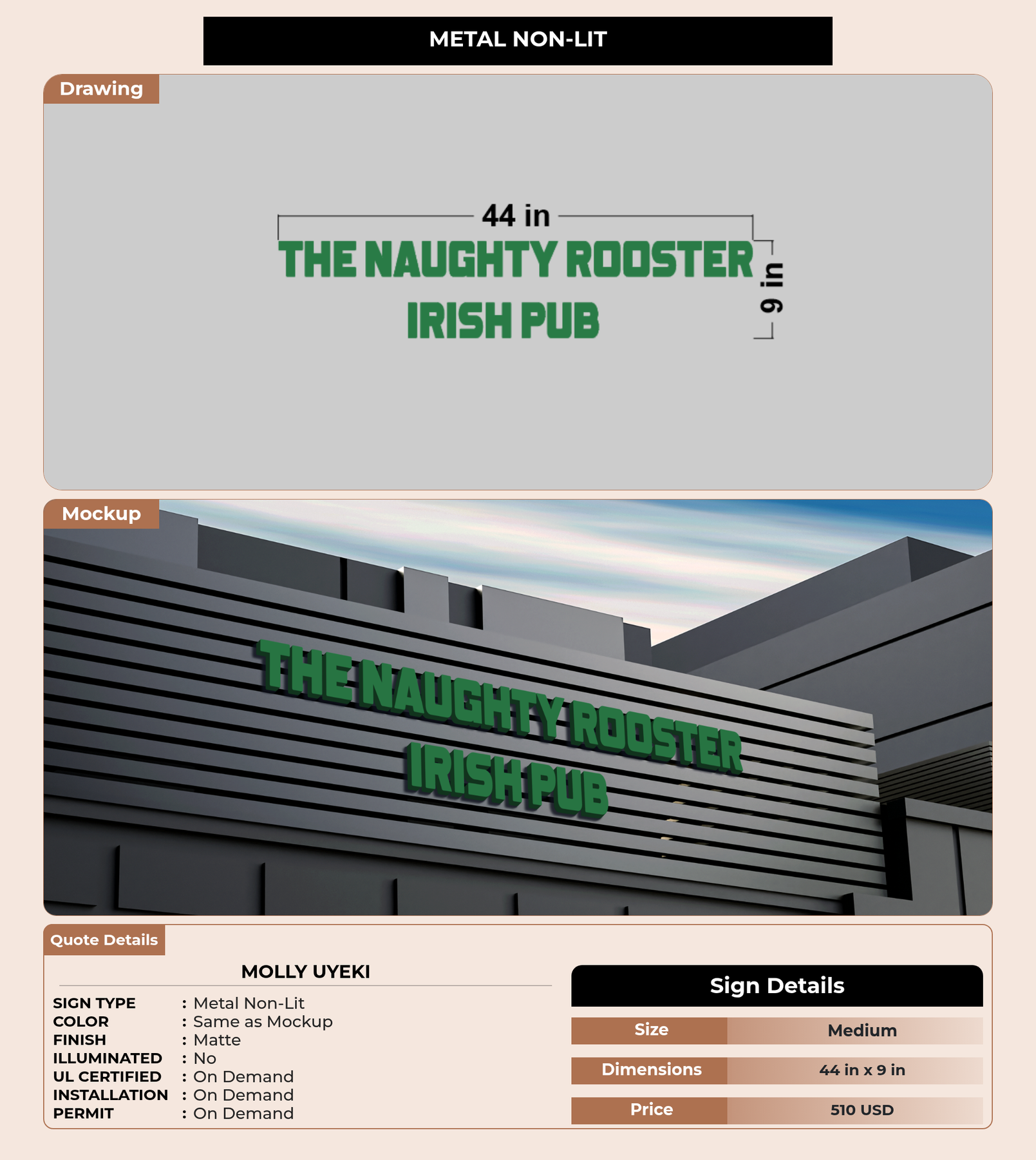 Crafted with premium material, this signage will elevate your business image, precisely mirroring your logo for a professional look.