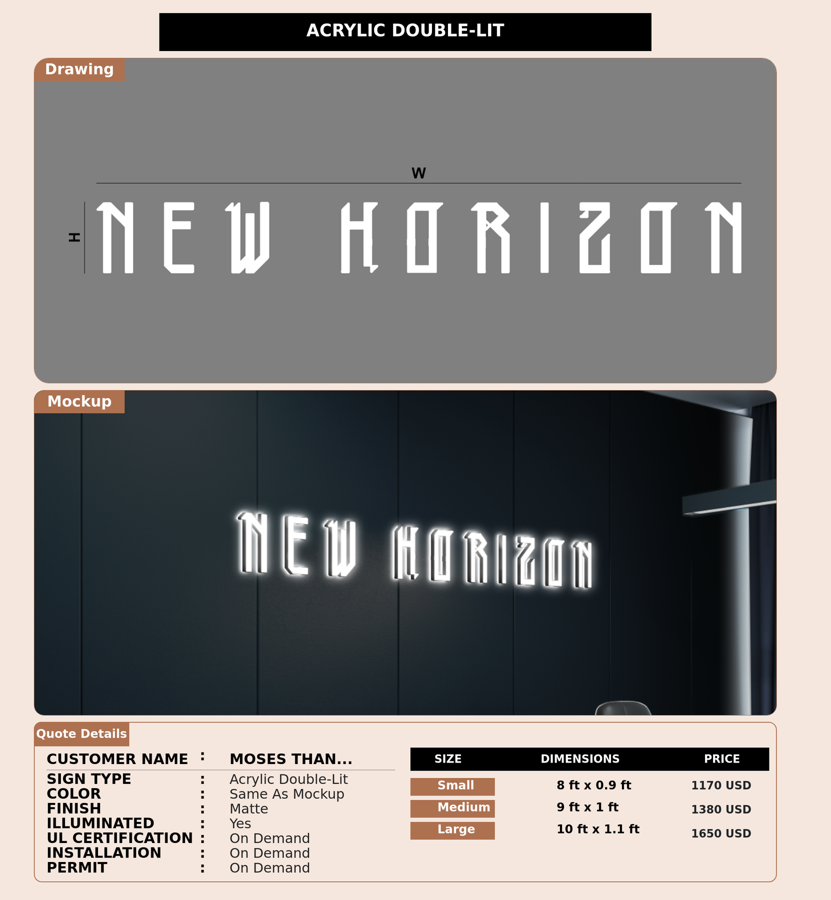 Enhance your business presence with our expertly crafted signage, made from top-quality material, to ensure longevity and durability. Fully customizable to reflect your unique brand identity, our signage offers a professional and polished appearance. Easy to install and low maintenance, it’s the perfect addition to any business setting. Trust us to deliver a product that not only meets but exceeds your expectations.