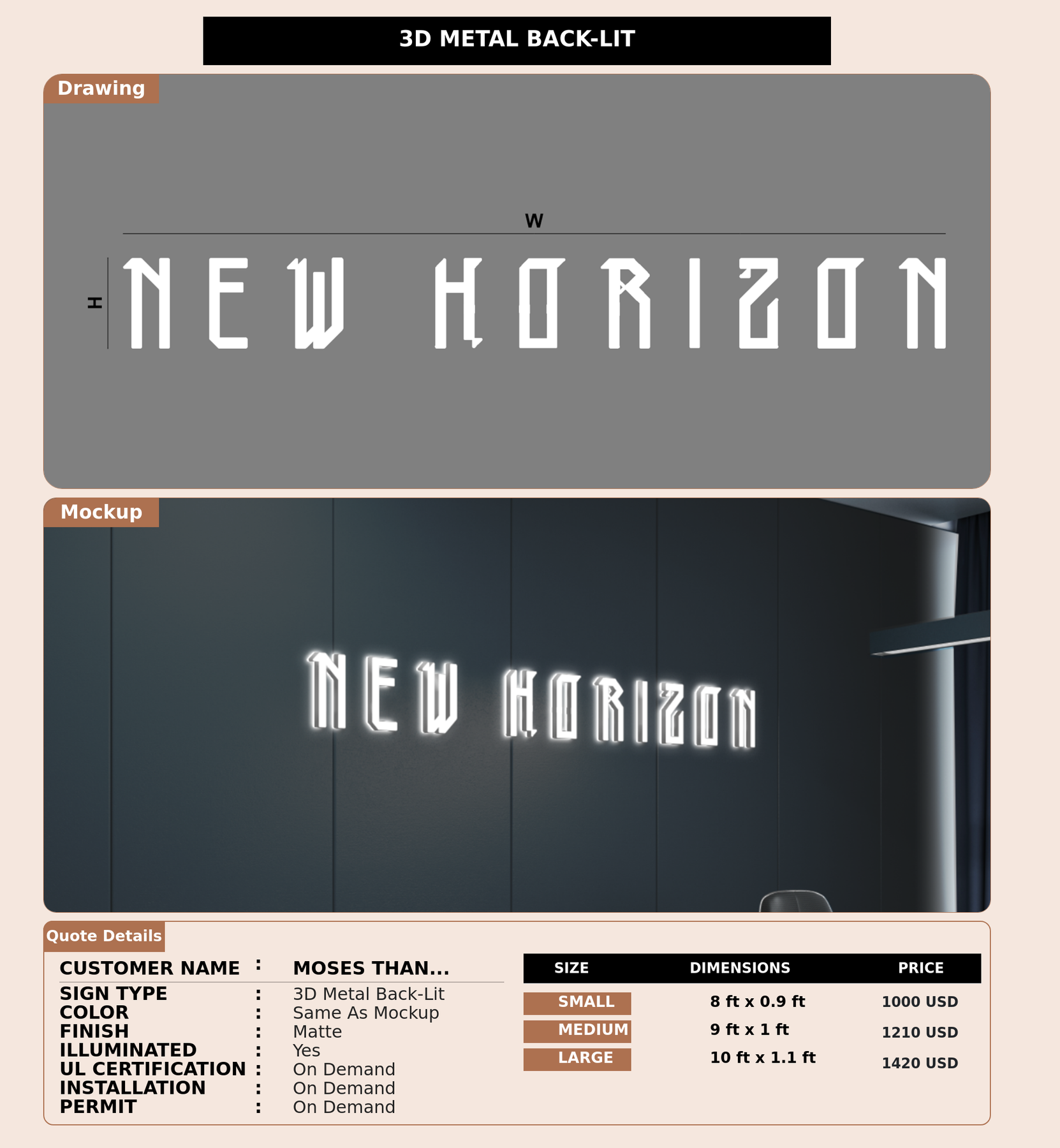 Crafted with premium material, this signage will elevate your business image, precisely mirroring your logo for a professional look.