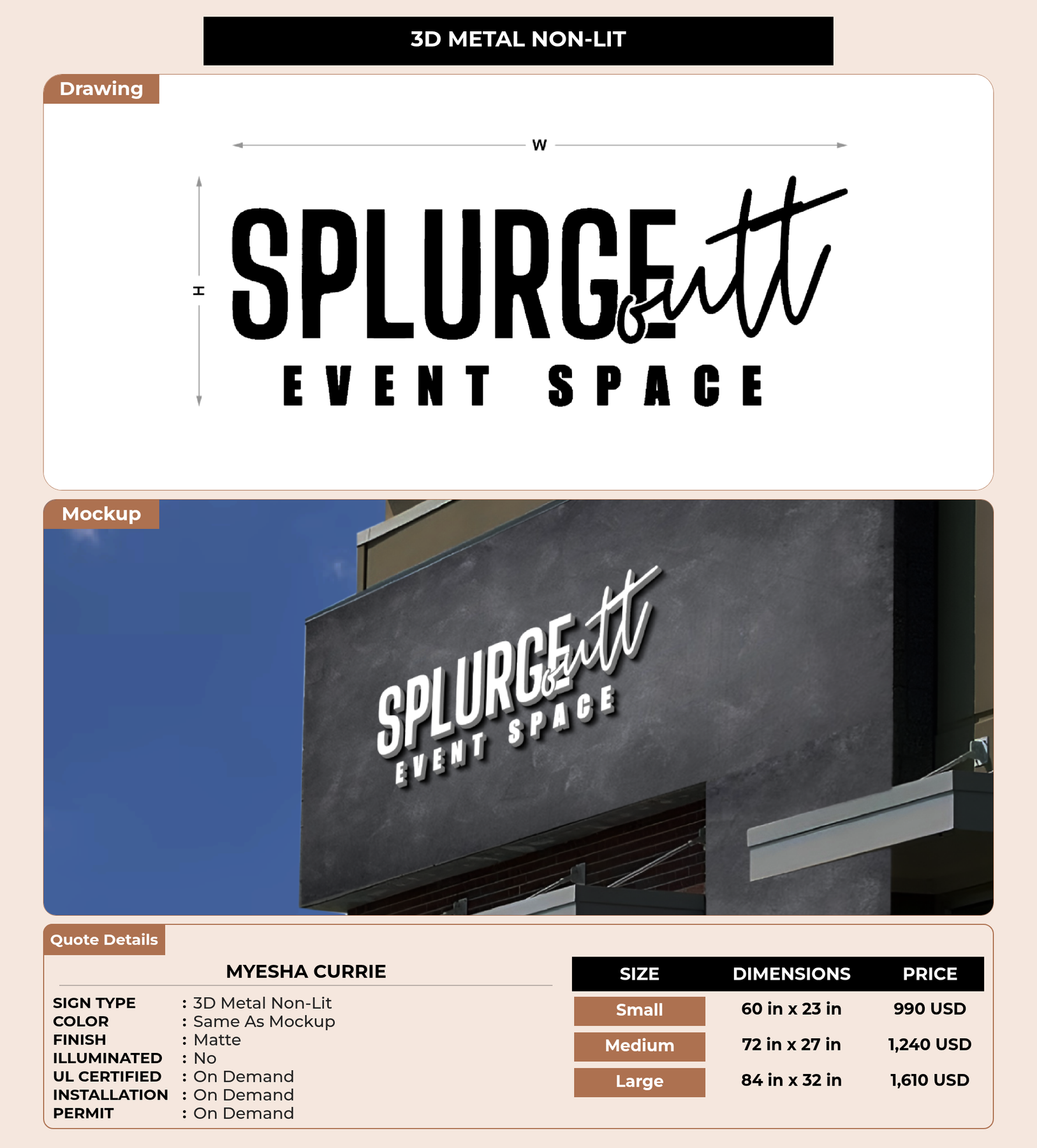 Enhance your business presence with our expertly crafted signage, made from top-quality material, to ensure longevity and durability. Fully customizable to reflect your unique brand identity, our signage offers a professional and polished appearance. Easy to install and low maintenance, it’s the perfect addition to any business setting. Trust us to deliver a product that not only meets but exceeds your expectations.