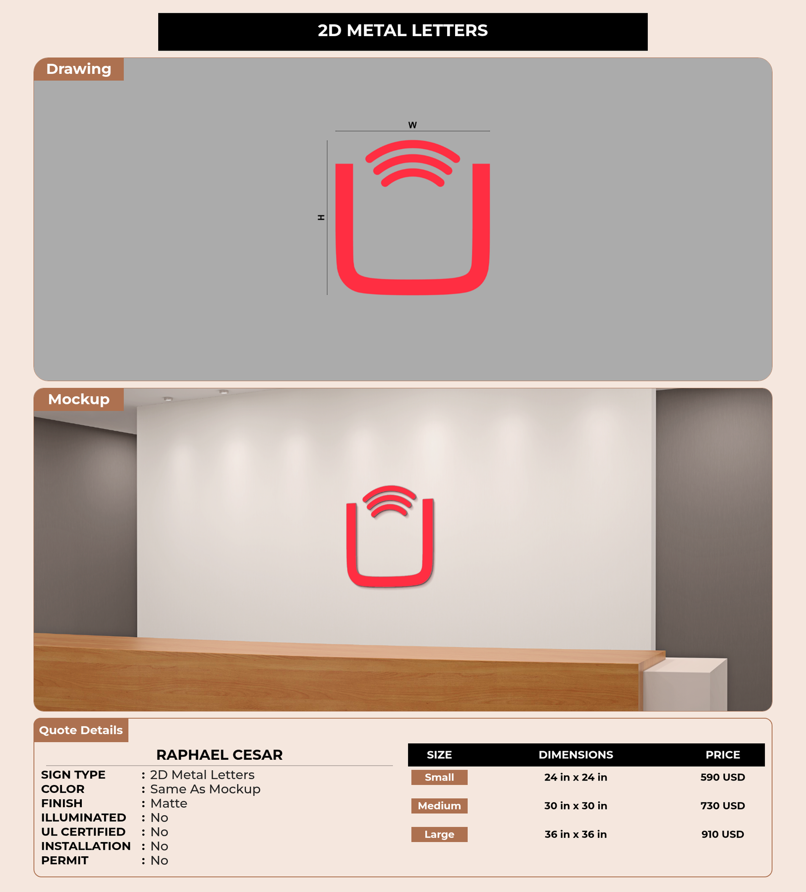 Crafted with premium material, this signage will elevate your business image, precisely mirroring your logo for a professional look.