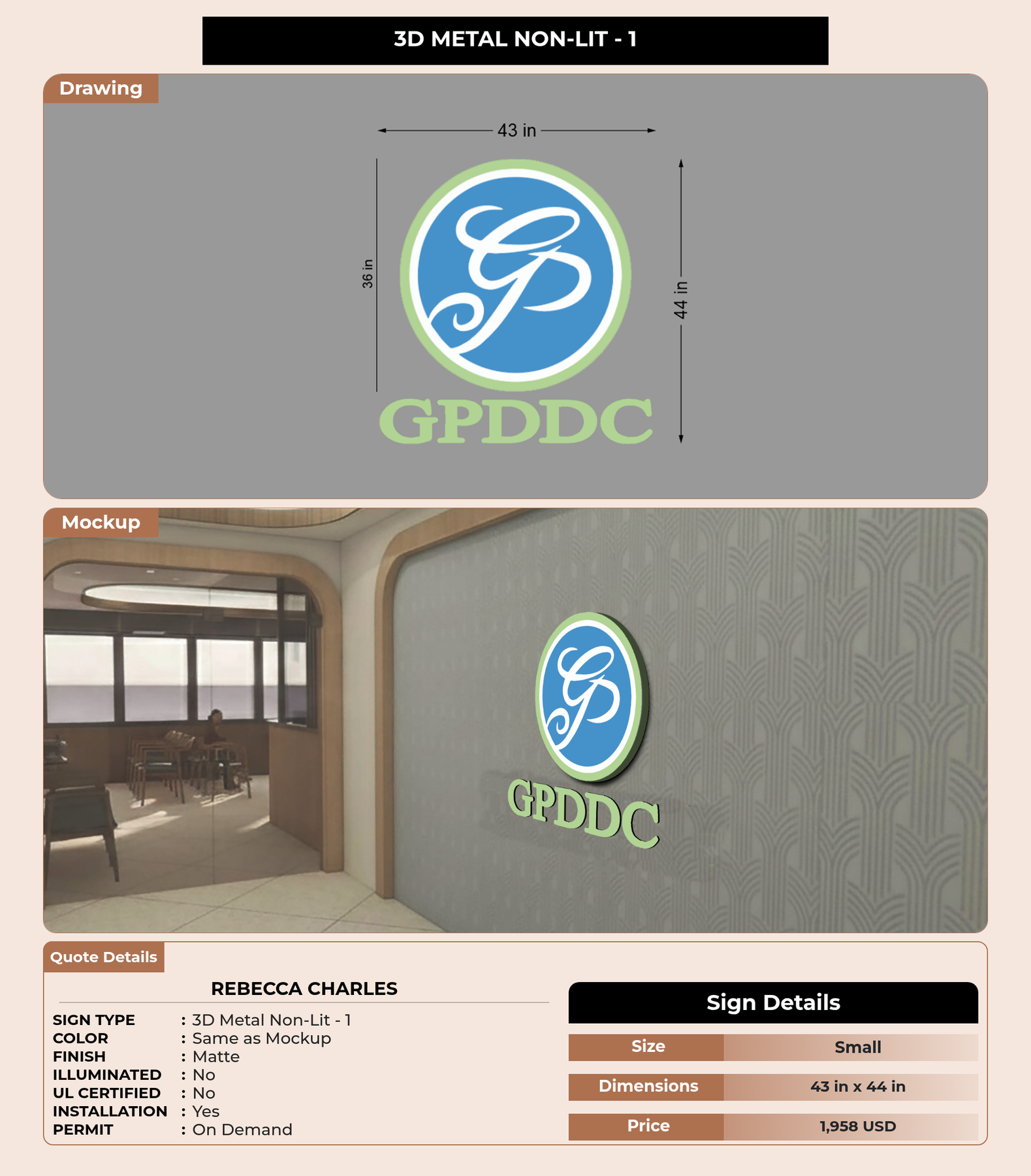 Crafted with premium material, this signage will elevate your business image, precisely mirroring your logo for a professional look.