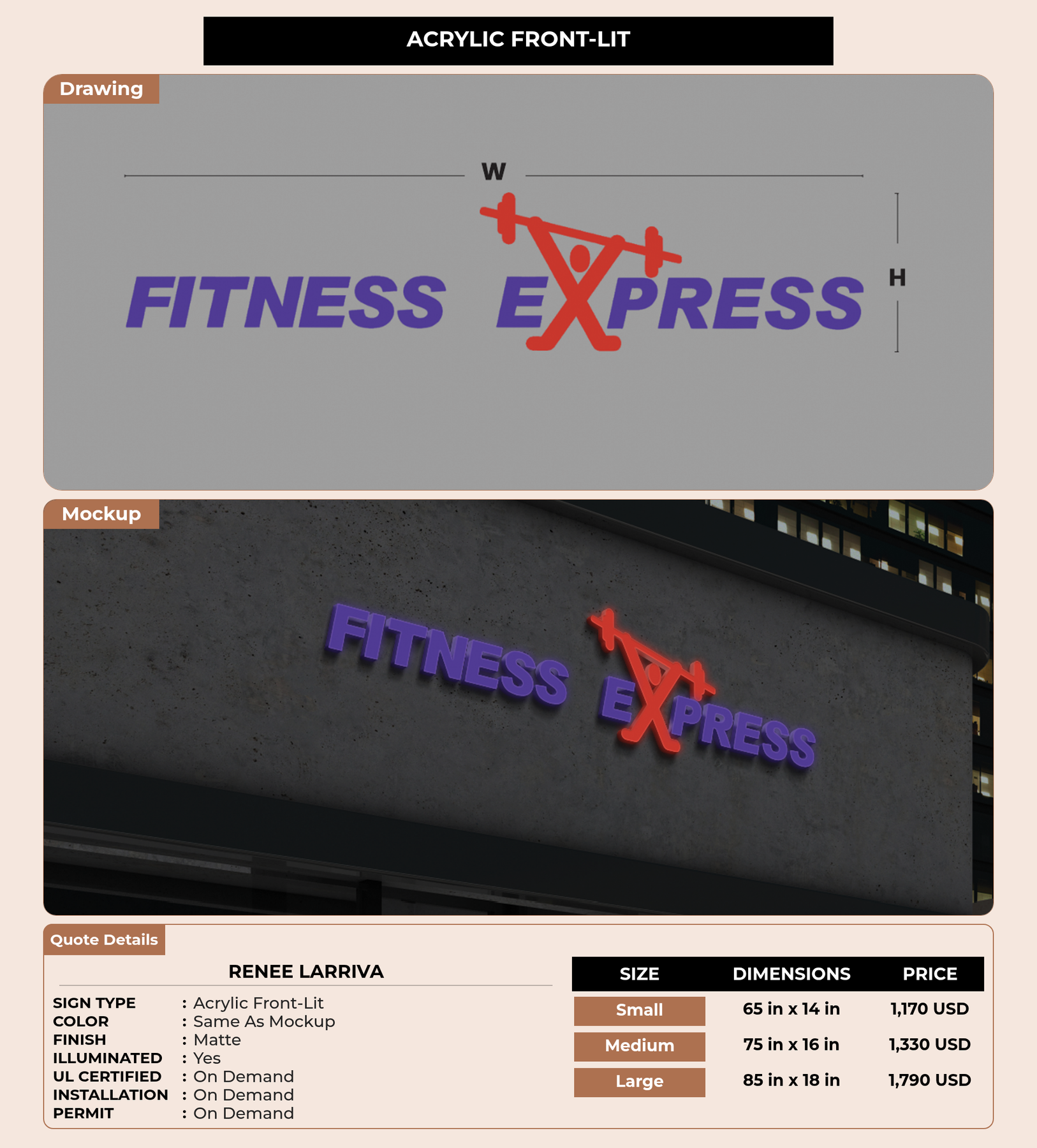 Eye-catching custom 3D sign for Renee Larriva