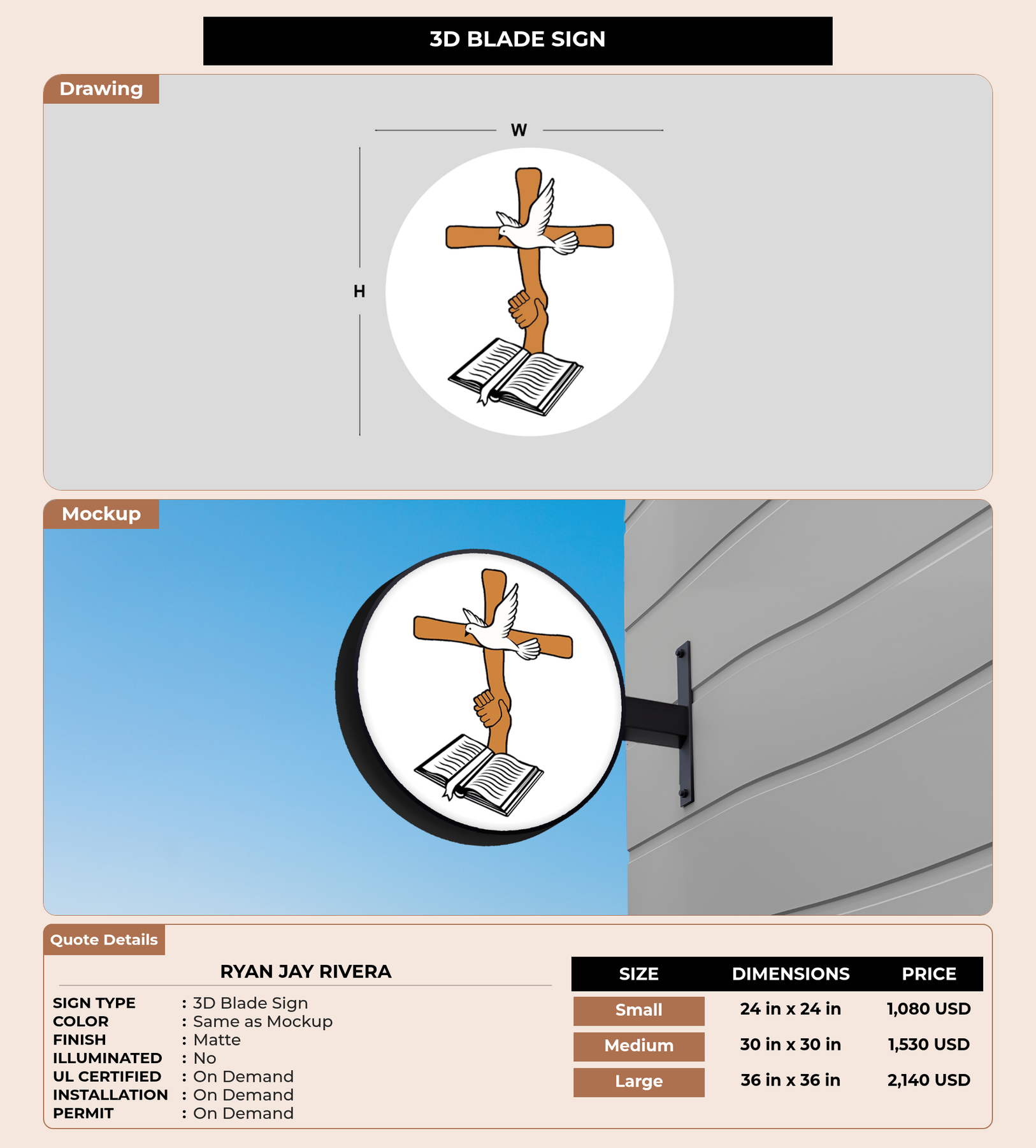 Eye-catching custom 3D sign for RYAN JAY RIVERA