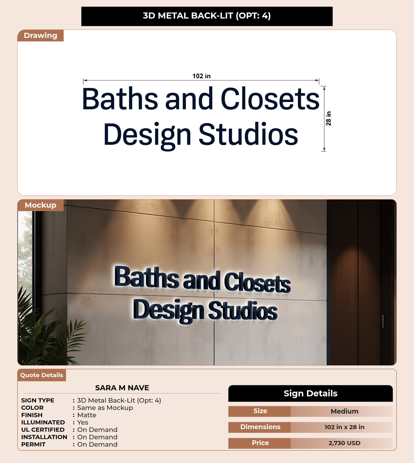 Eye-catching custom 3D sign for Sara M Nave