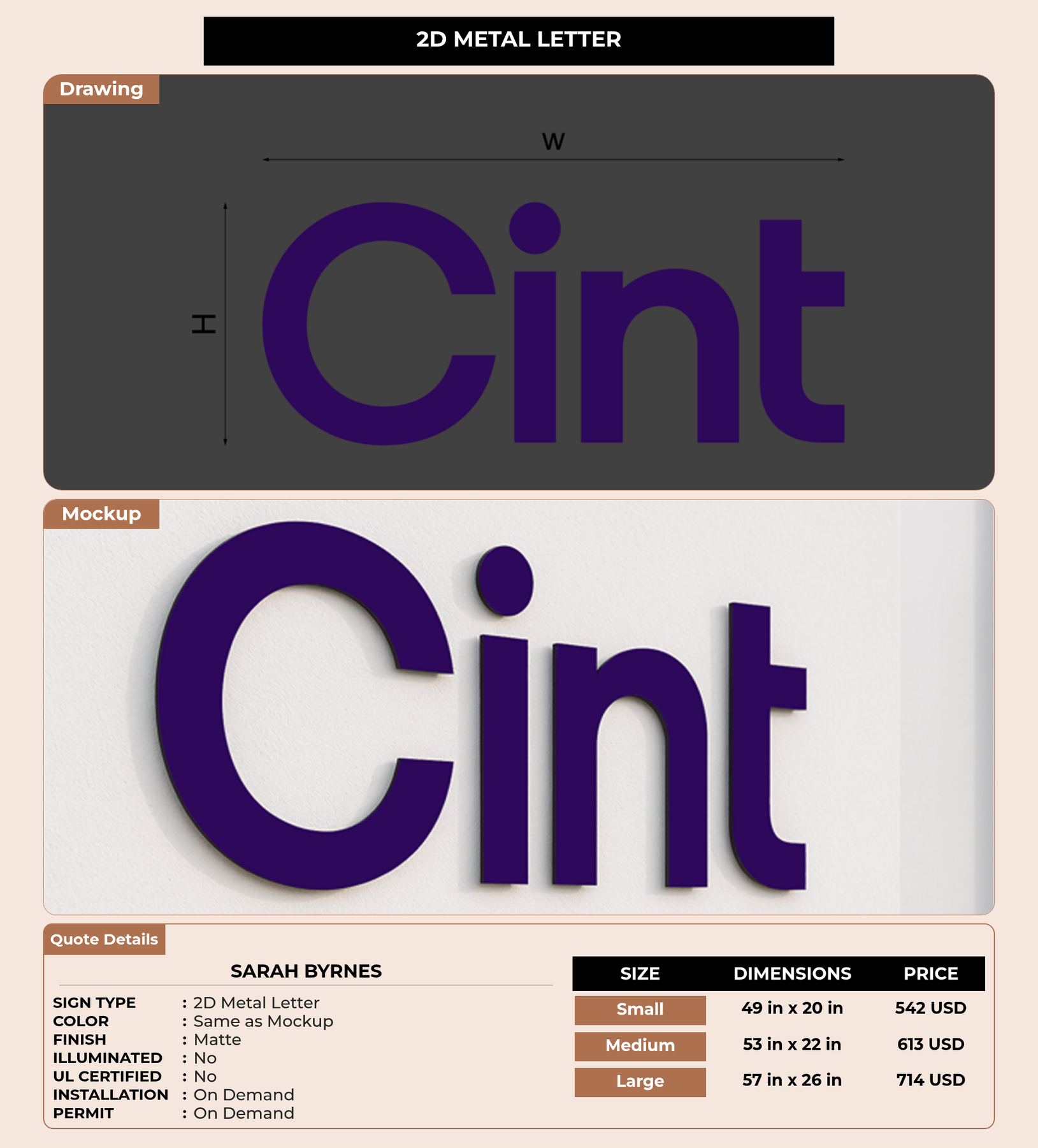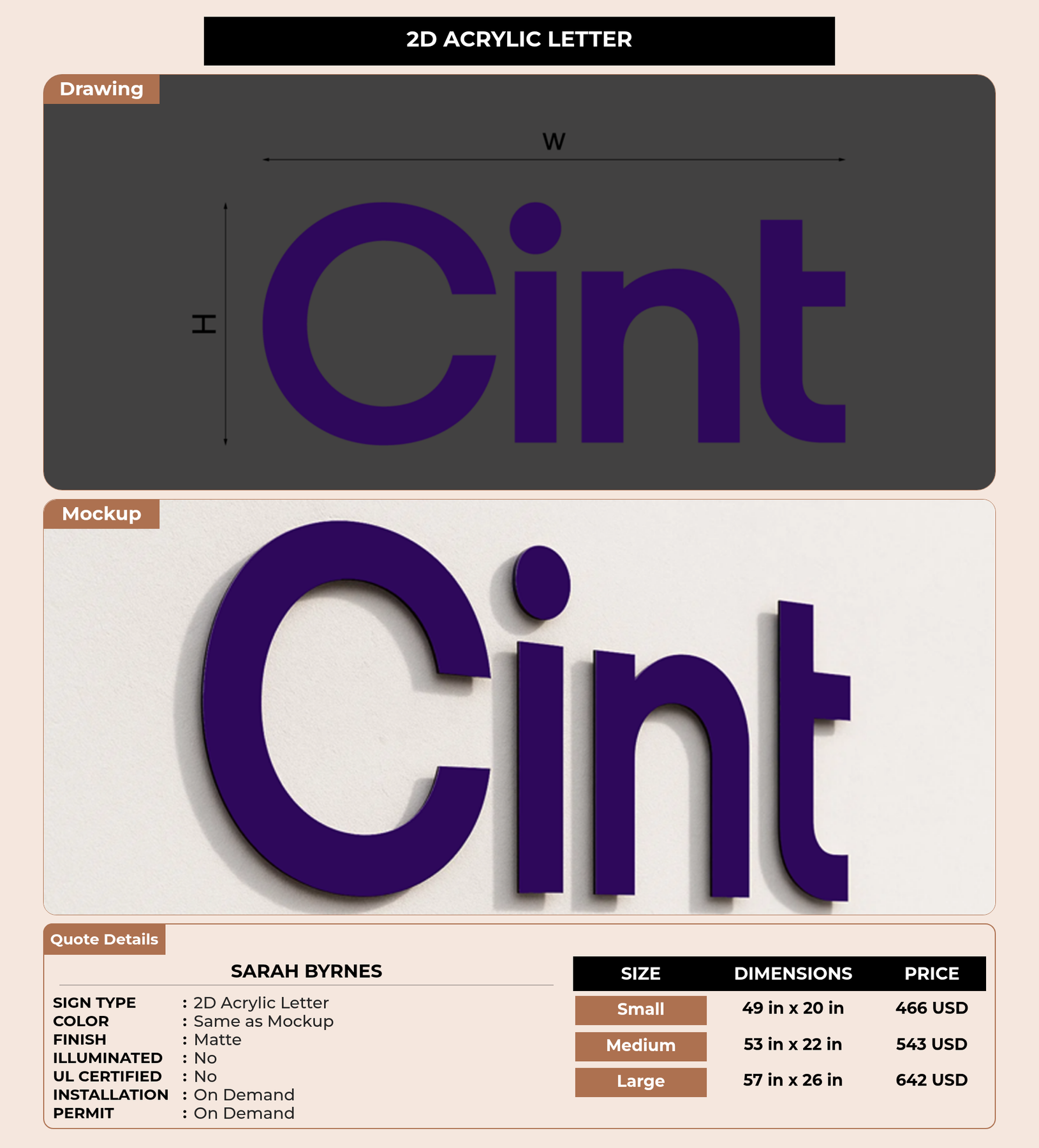 Enhance your business presence with our expertly crafted signage, made from top-quality material, to ensure longevity and durability. Fully customizable to reflect your unique brand identity, our signage offers a professional and polished appearance. Easy to install and low maintenance, it’s the perfect addition to any business setting. Trust us to deliver a product that not only meets but exceeds your expectations.