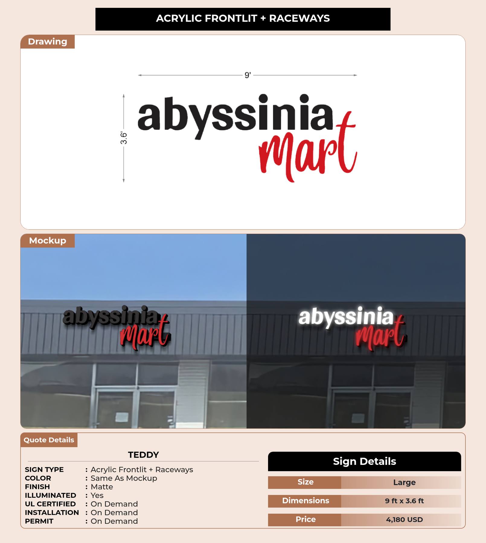 50% DEPOSIT CUSTOM MOCKUP SIGN FOR Teddy