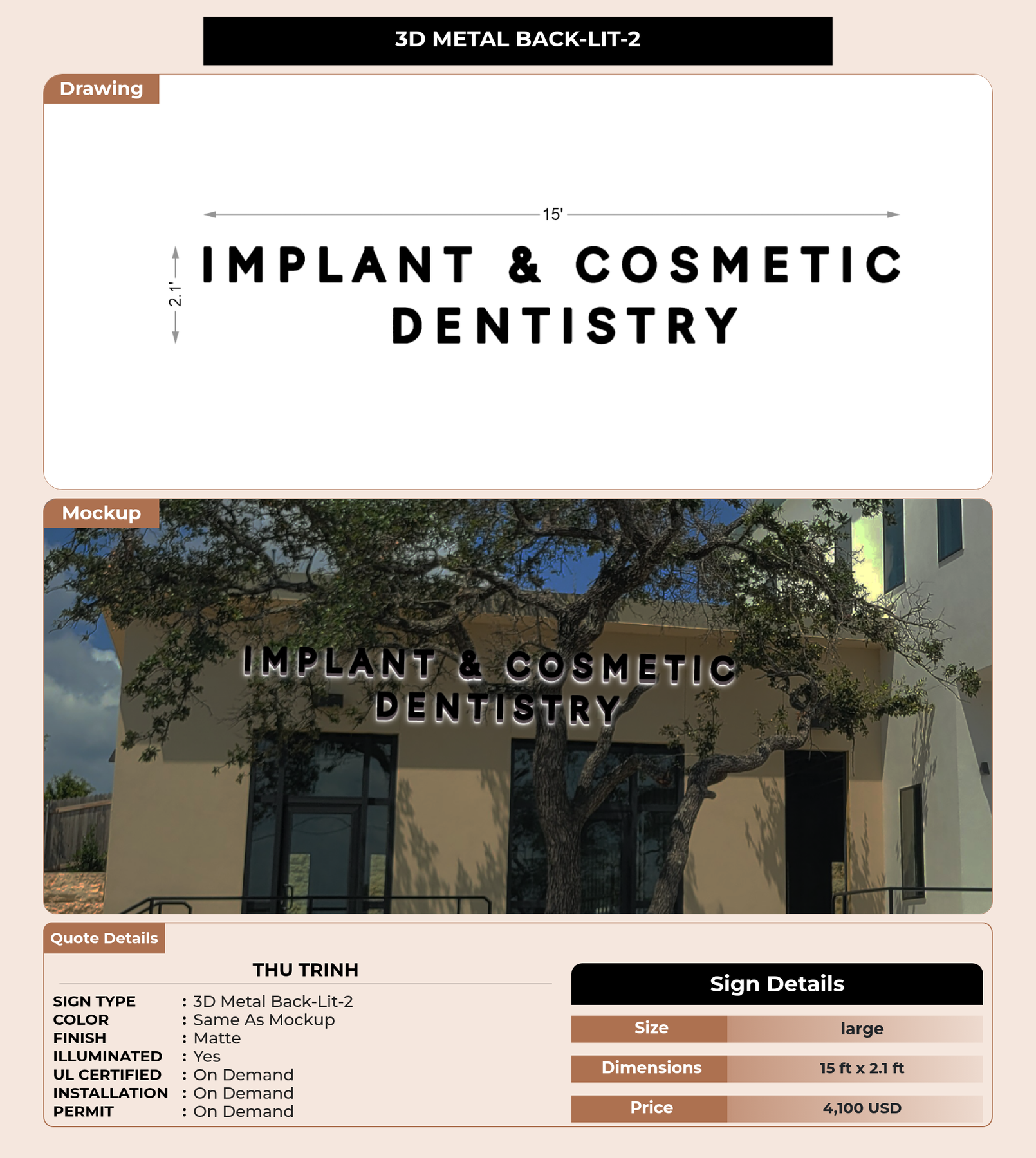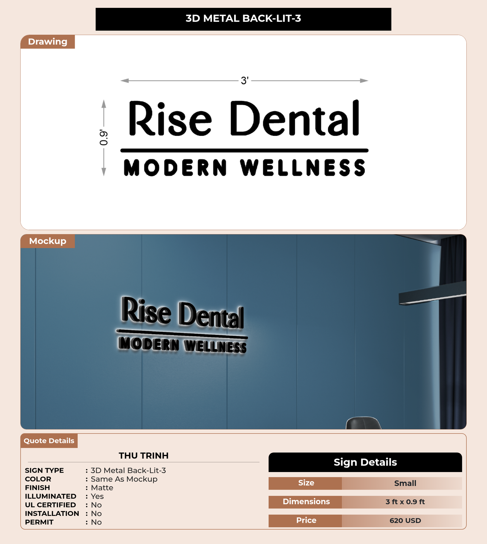 Eye-catching custom 3D sign for Thu Trinh