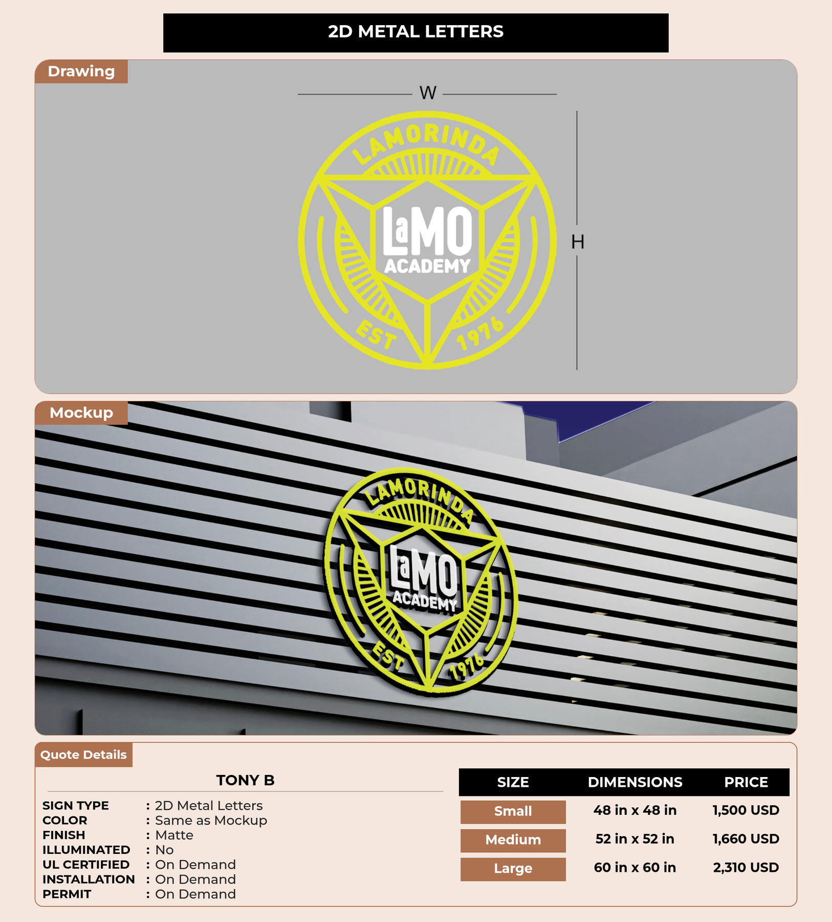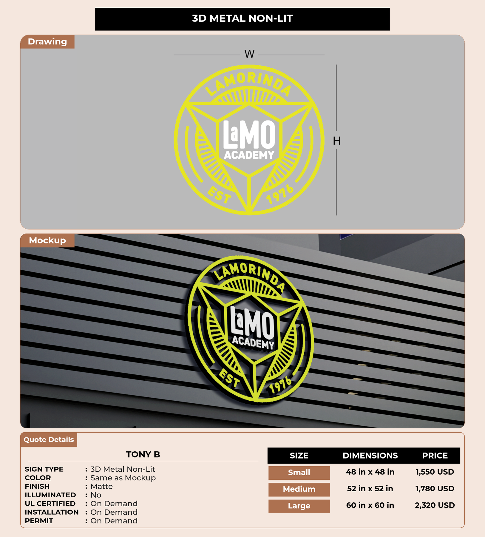 Crafted with premium material, this signage will elevate your business image, precisely mirroring your logo for a professional look.