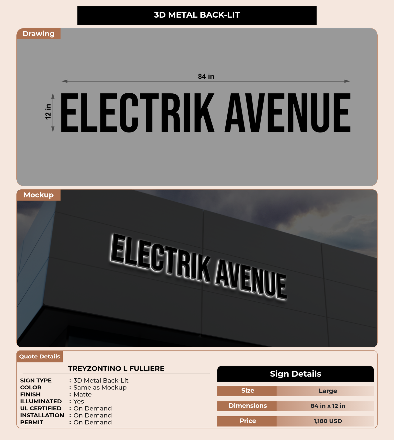 Eye-catching custom 3D sign for TREYZONTINO L FULLIERE