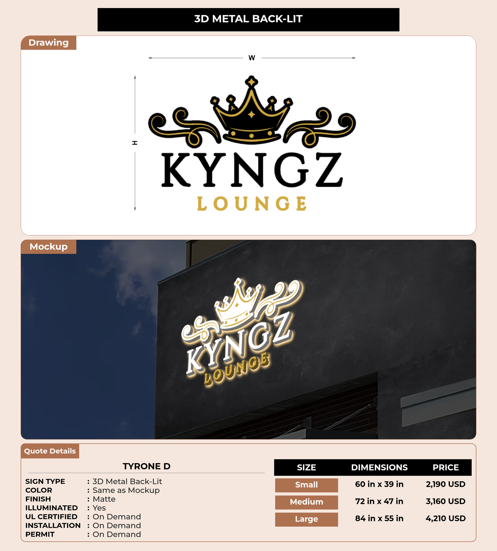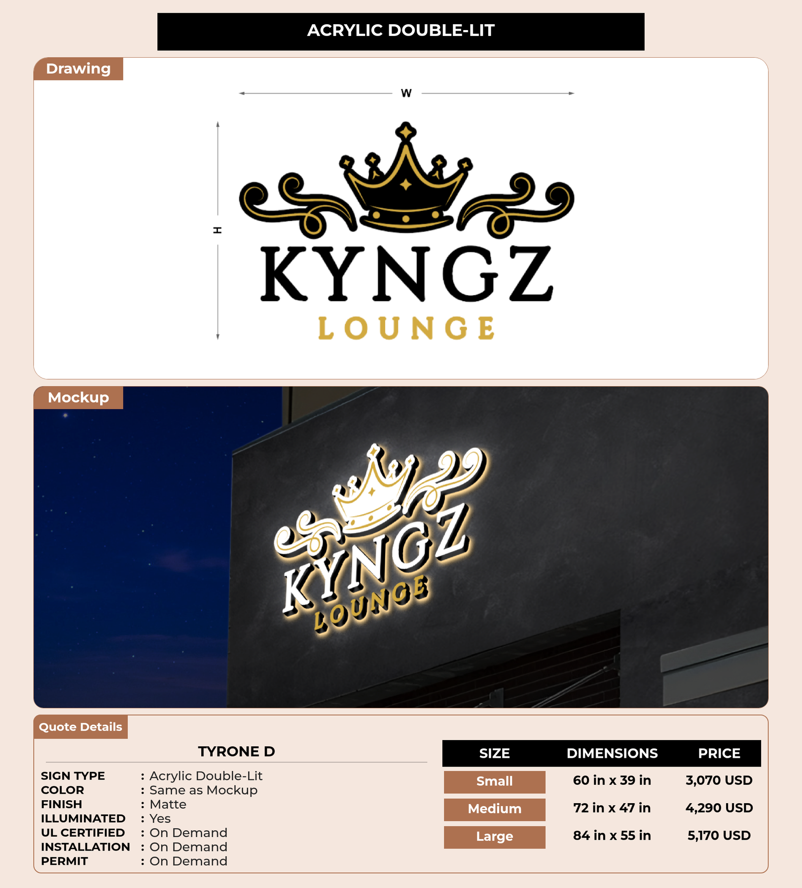 Enhance your business presence with our expertly crafted signage, made from top-quality material, to ensure longevity and durability. Fully customizable to reflect your unique brand identity, our signage offers a professional and polished appearance. Easy to install and low maintenance, it’s the perfect addition to any business setting. Trust us to deliver a product that not only meets but exceeds your expectations.