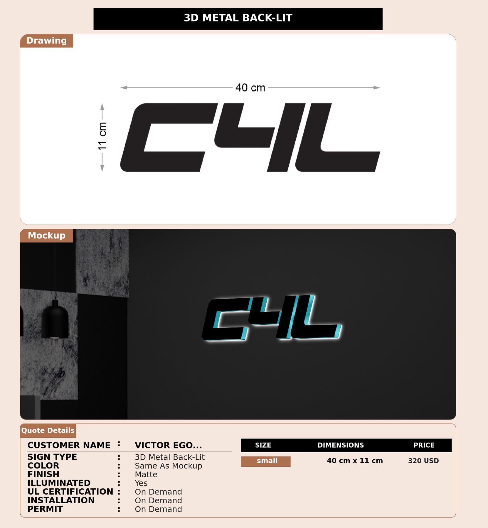 Eye-catching custom 3D sign for Victor Egonu