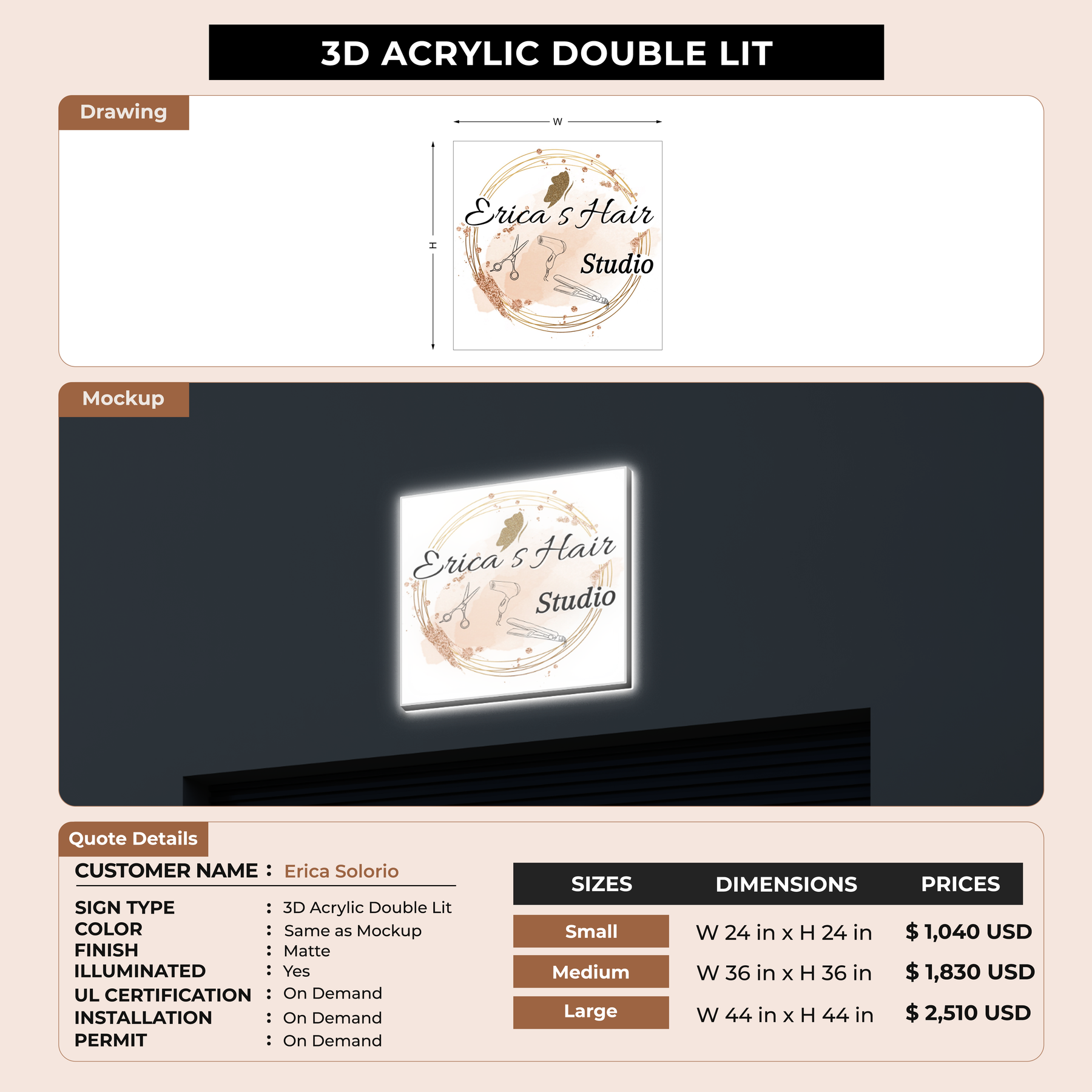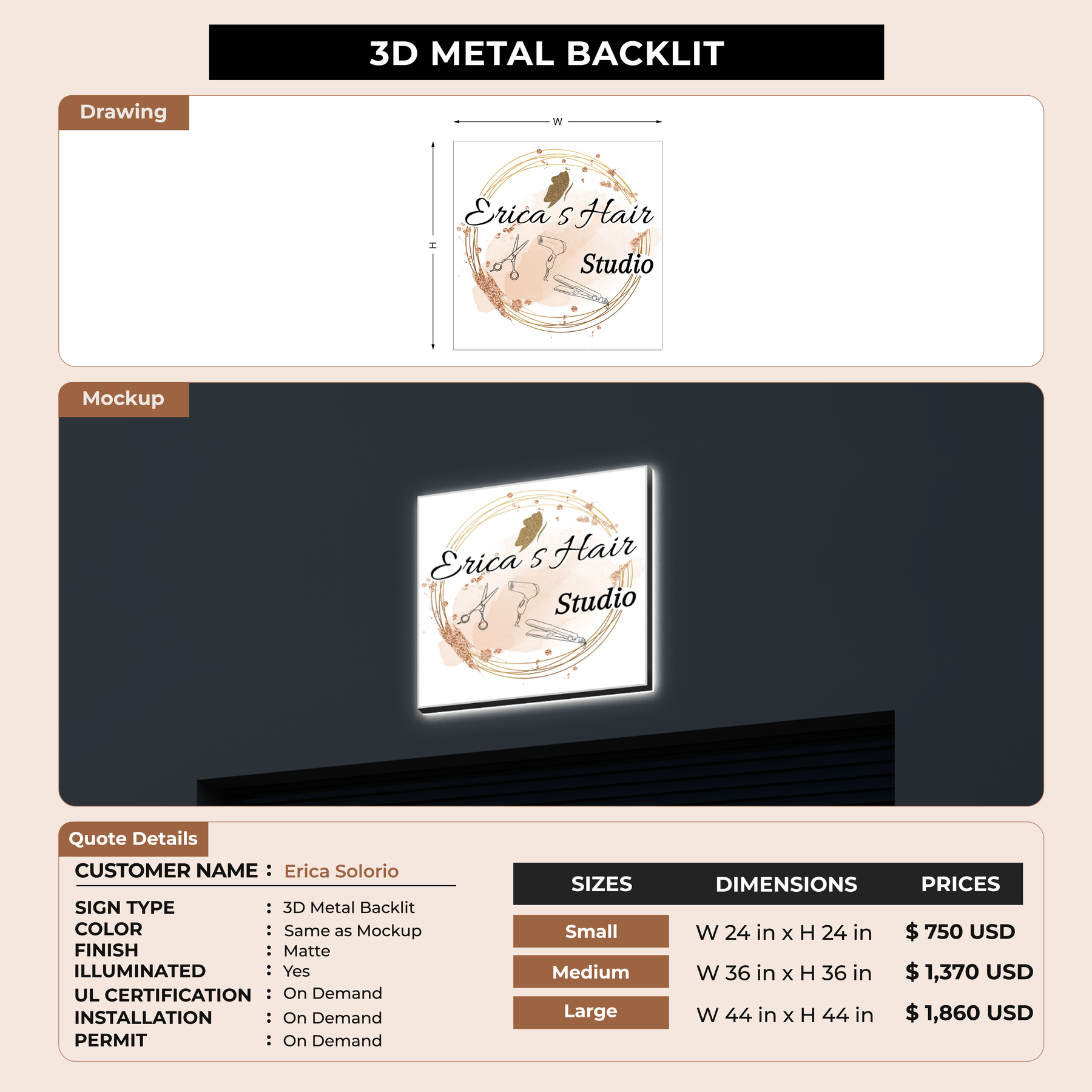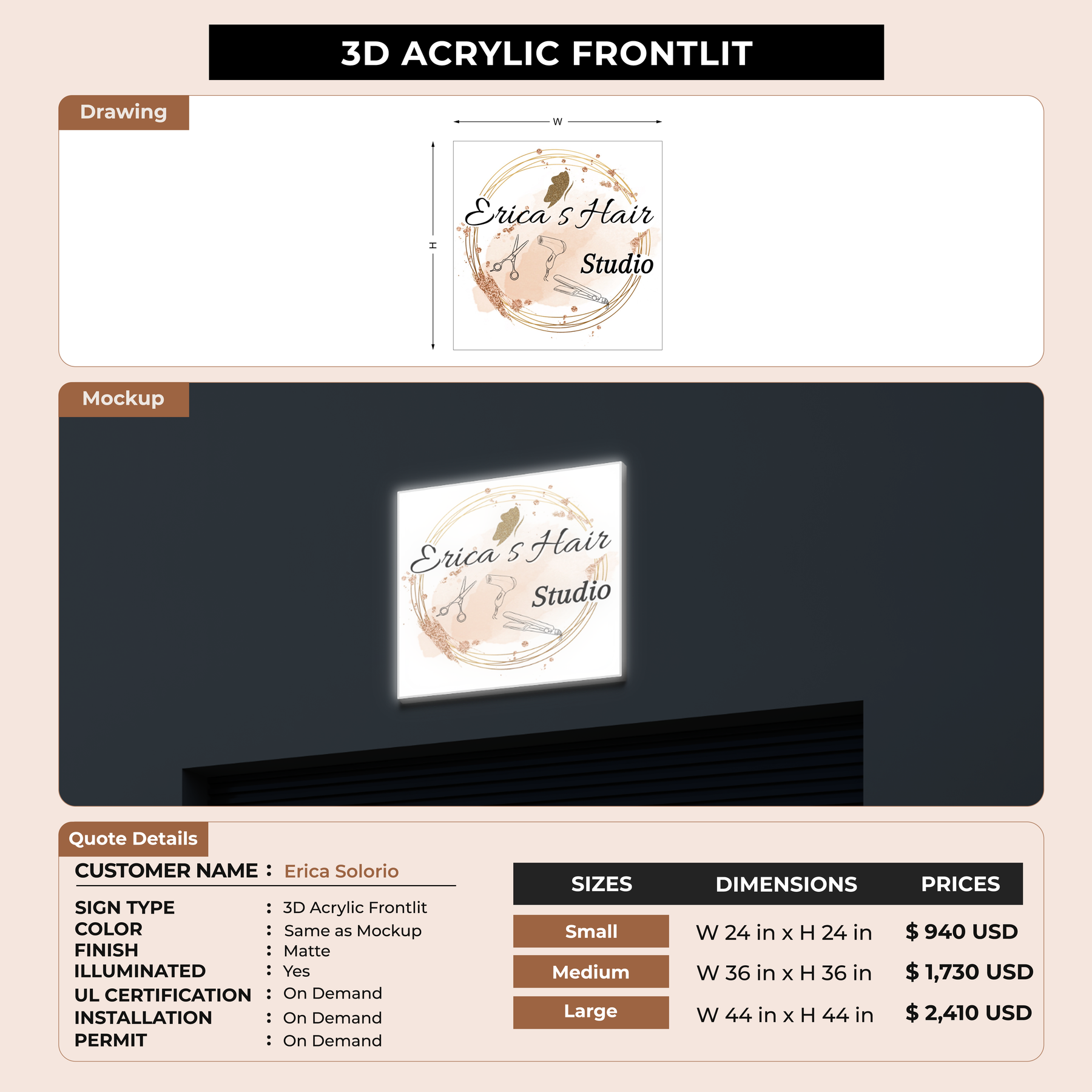 Crafted with premium material, this signage will elevate your business image, precisely mirroring your logo for a professional look.