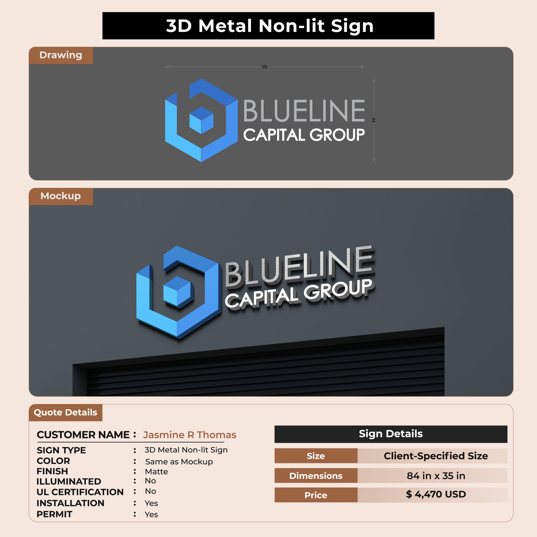 Crafted with premium material, this signage will elevate your business image, precisely mirroring your logo for a professional look.