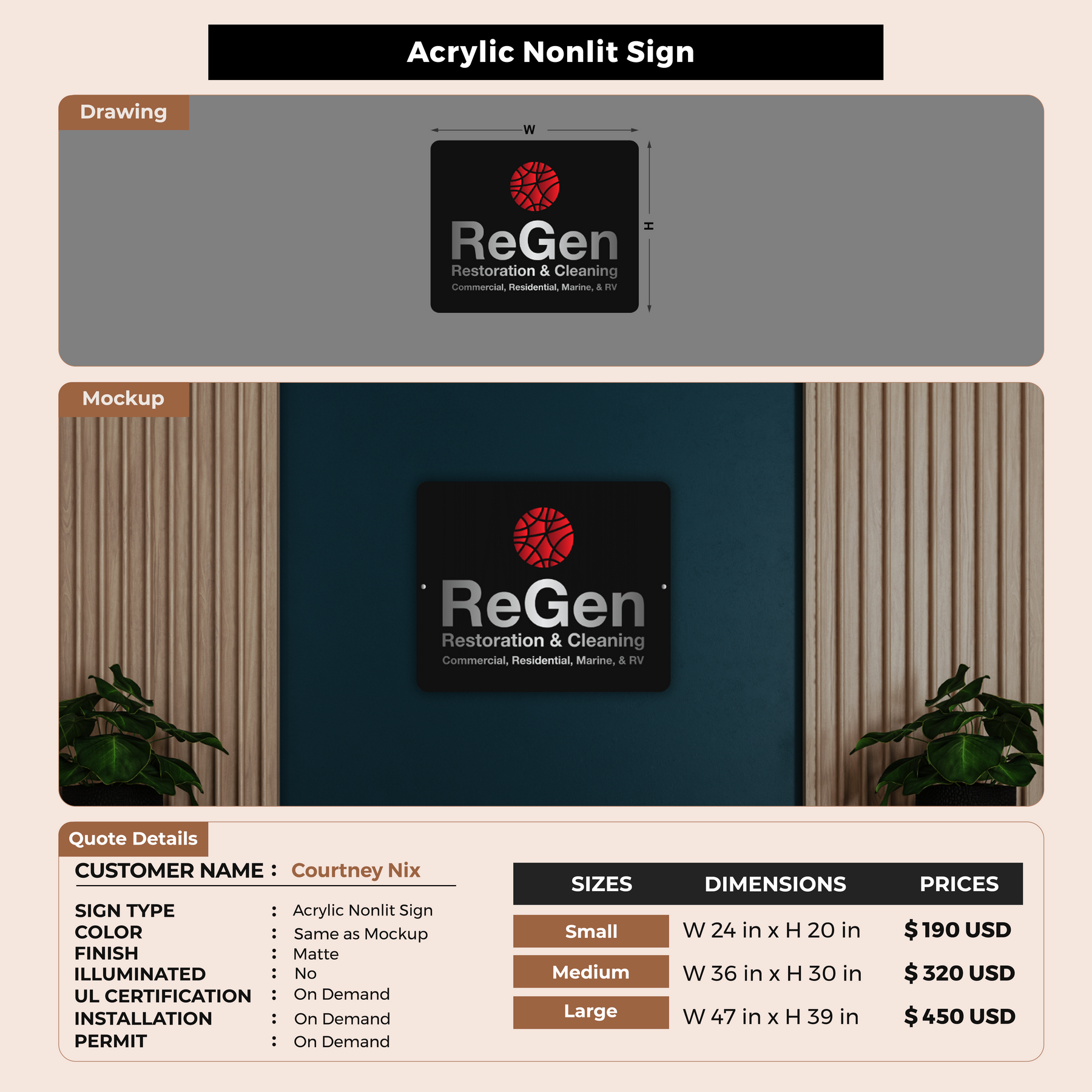 Enhance your business presence with our expertly crafted signage, made from top-quality material, to ensure longevity and durability. Fully customizable to reflect your unique brand identity, our signage offers a professional and polished appearance. Easy to install and low maintenance, it’s the perfect addition to any business setting. Trust us to deliver a product that not only meets but exceeds your expectations.
