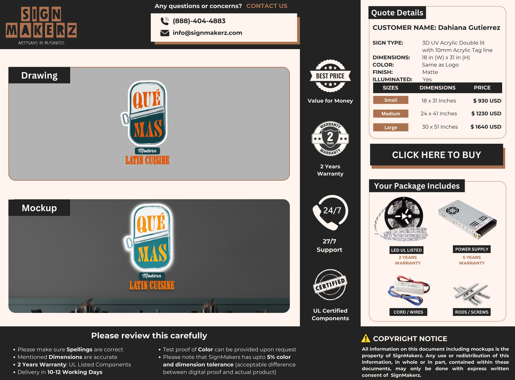 Crafted with premium material, this signage will elevate your business image, precisely mirroring your logo for a professional look.