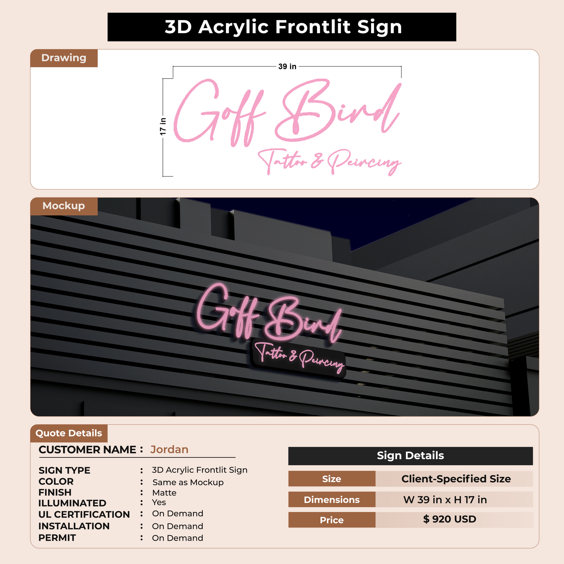 Crafted with premium material, this signage will elevate your business image, precisely mirroring your logo for a professional look.