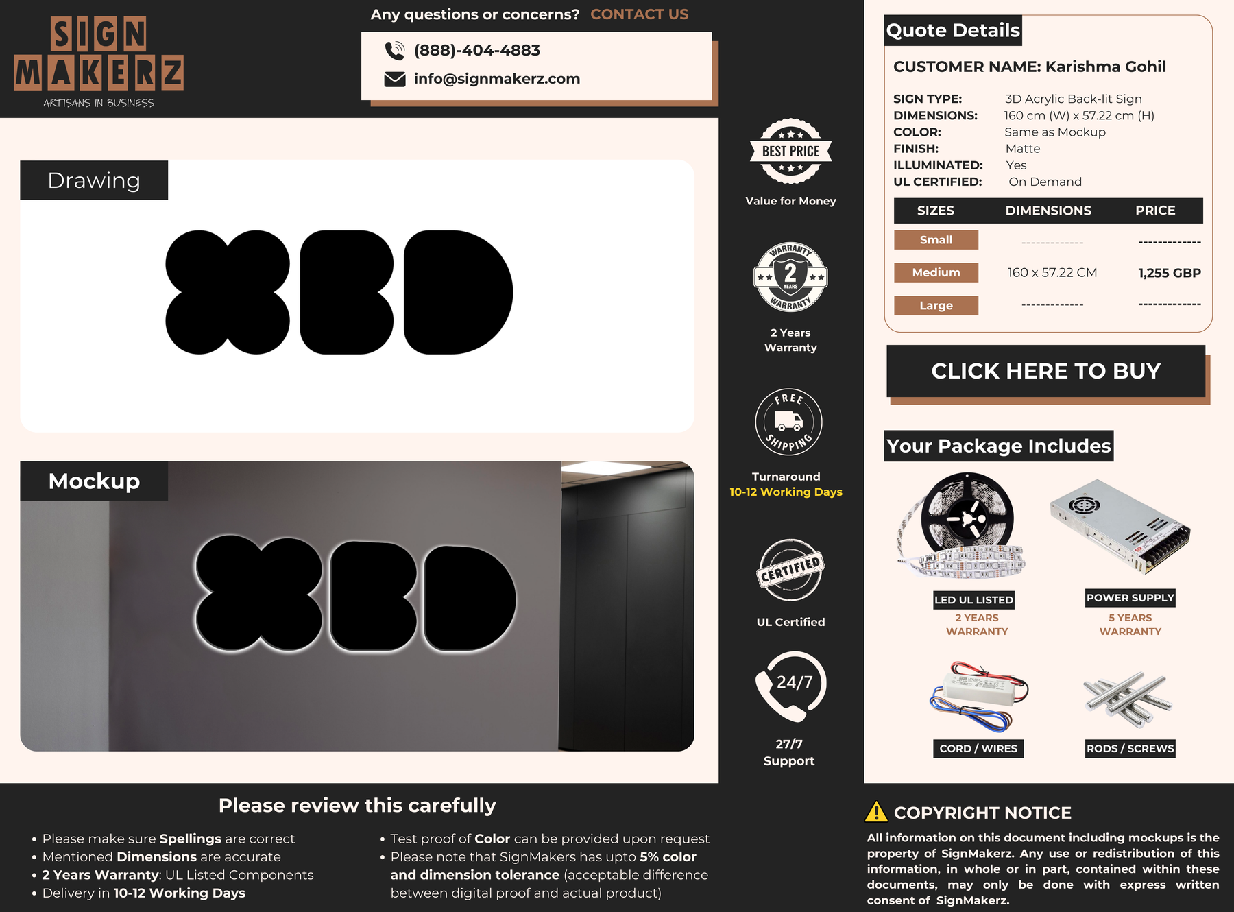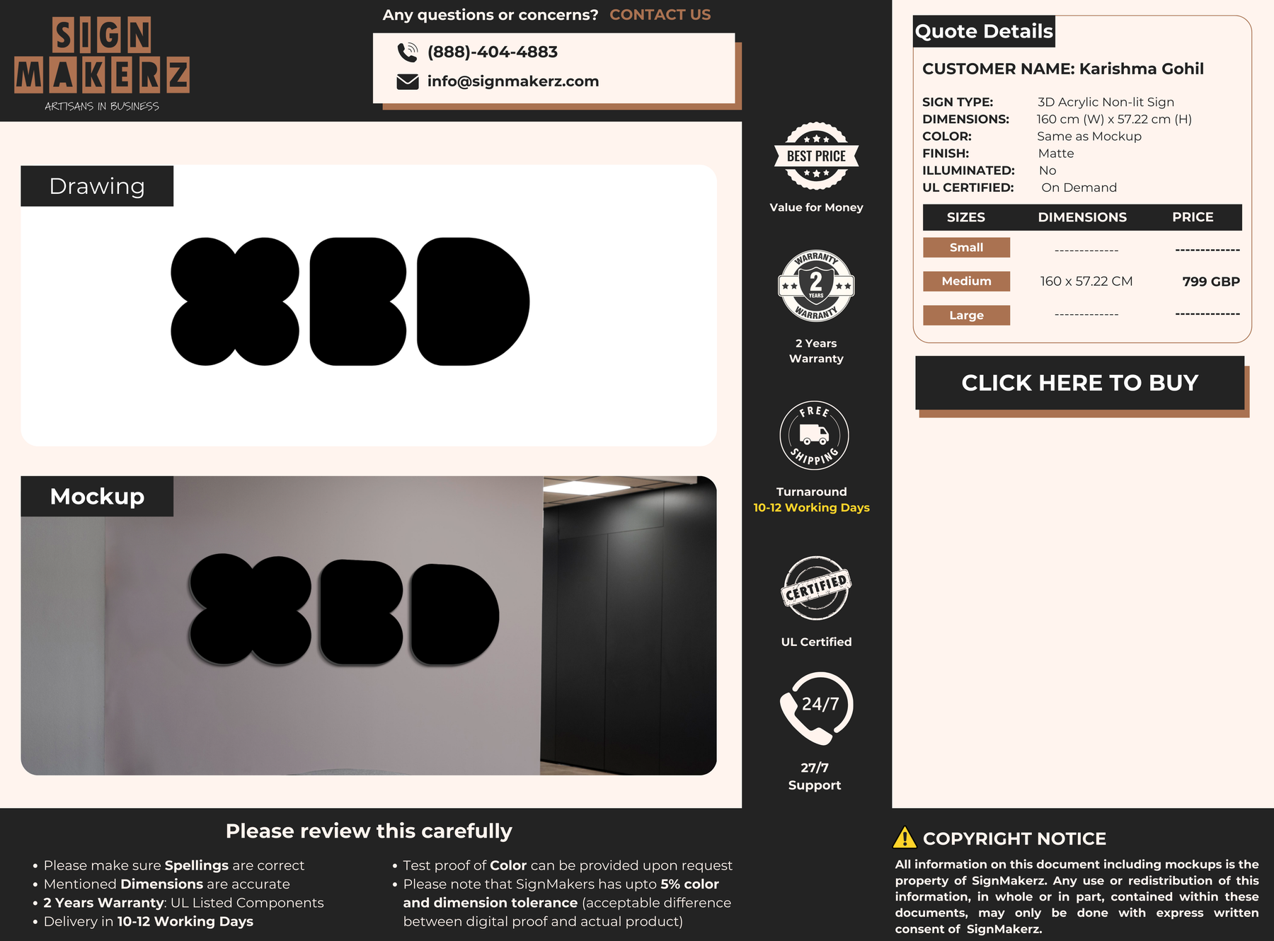Crafted with premium material, this signage will elevate your business image, precisely mirroring your logo for a professional look.
