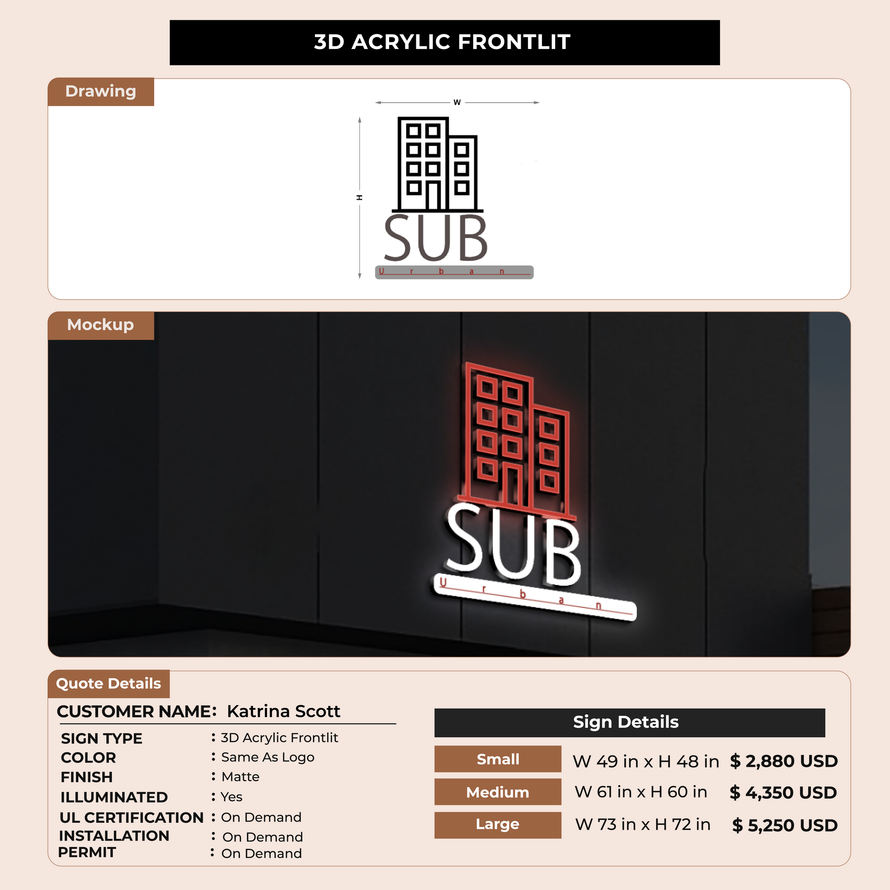 Crafted with premium material, this signage will elevate your business image, precisely mirroring your logo for a professional look.