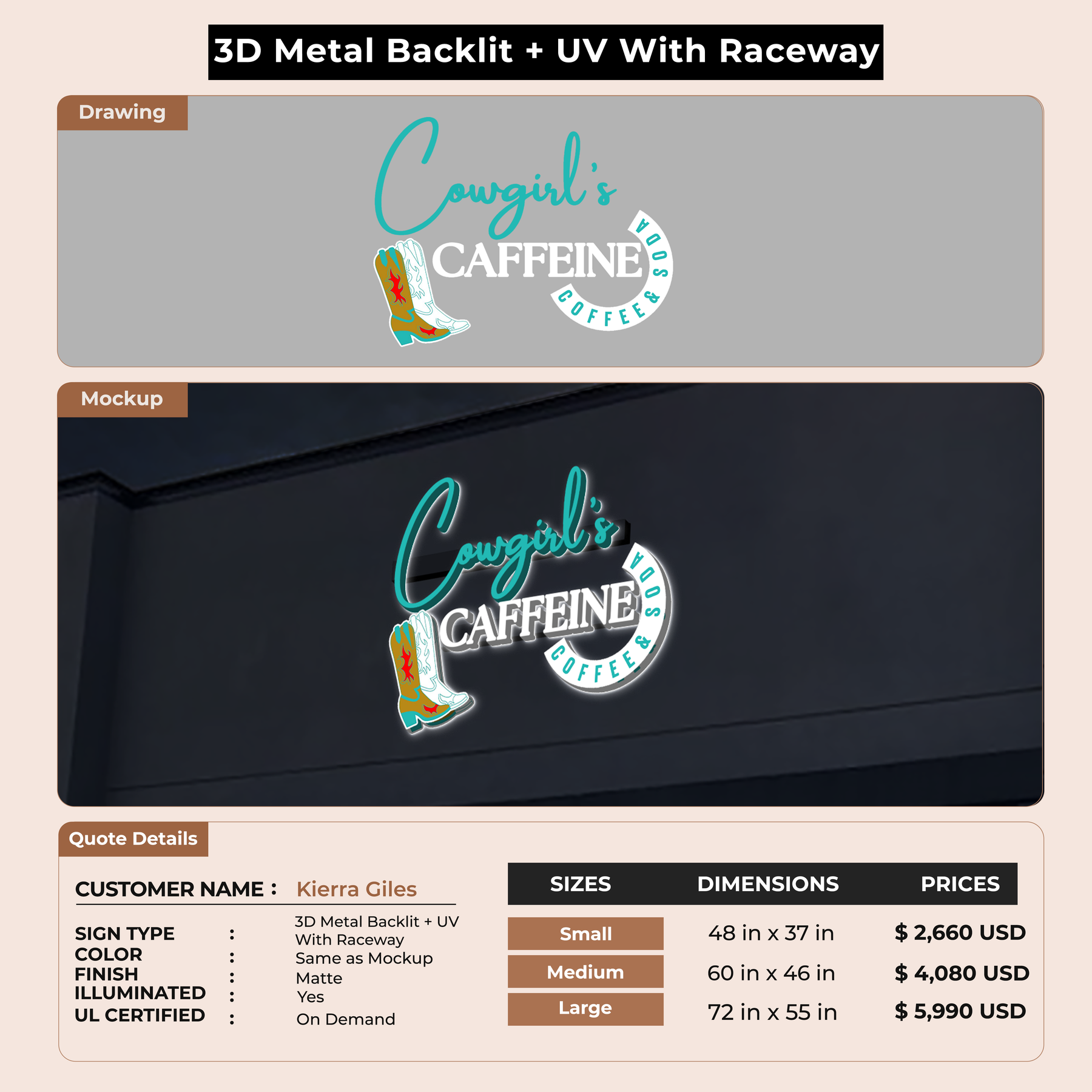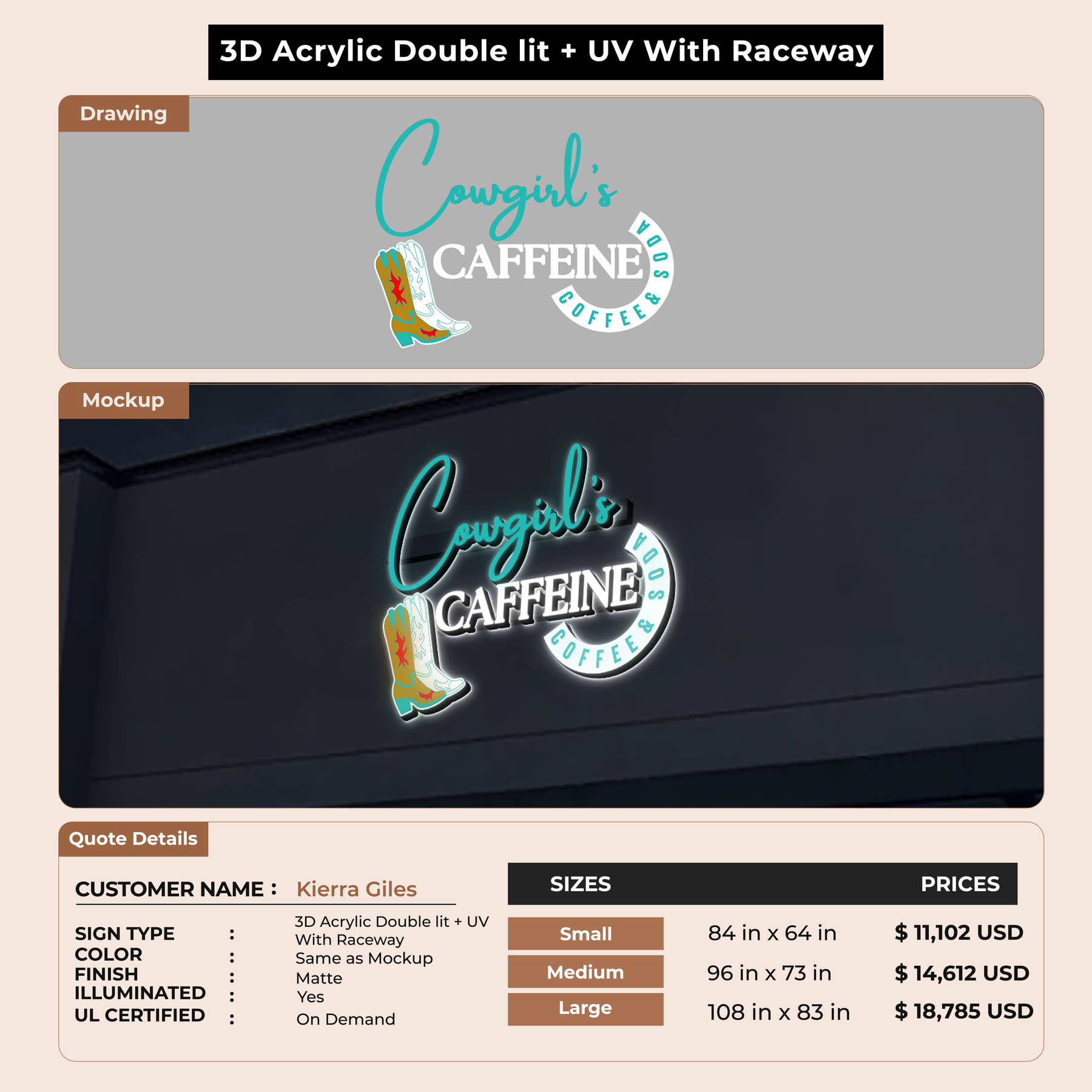 Crafted with premium material, this signage will elevate your business image, precisely mirroring your logo for a professional look.