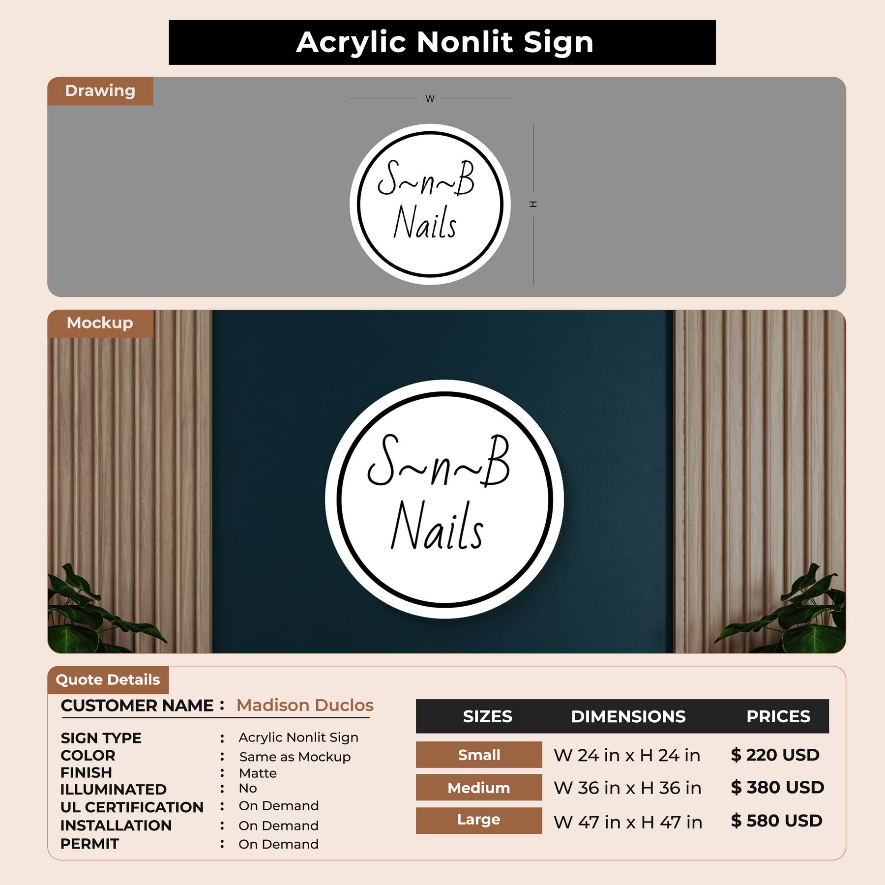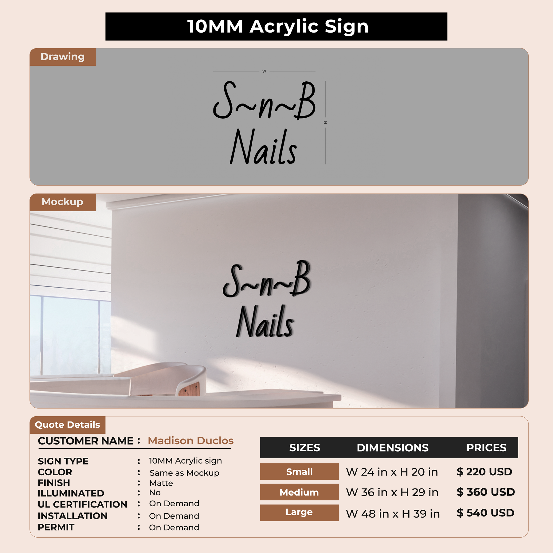 Enhance your business presence with our expertly crafted signage, made from top-quality material, to ensure longevity and durability. Fully customizable to reflect your unique brand identity, our signage offers a professional and polished appearance. Easy to install and low maintenance, it’s the perfect addition to any business setting. Trust us to deliver a product that not only meets but exceeds your expectations.