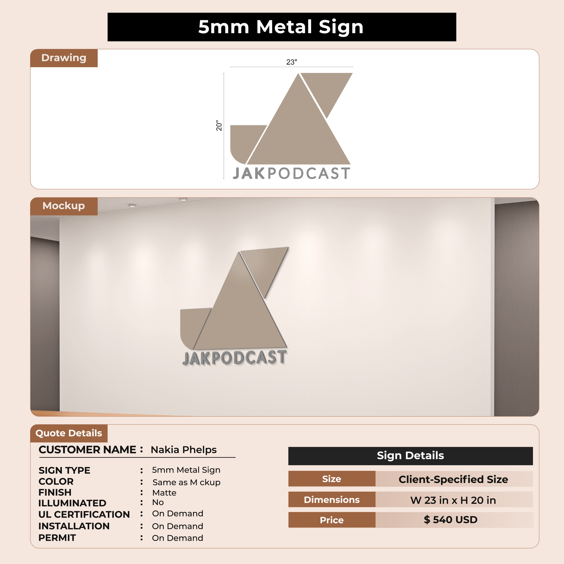 Crafted with premium material, this signage will elevate your business image, precisely mirroring your logo for a professional look.