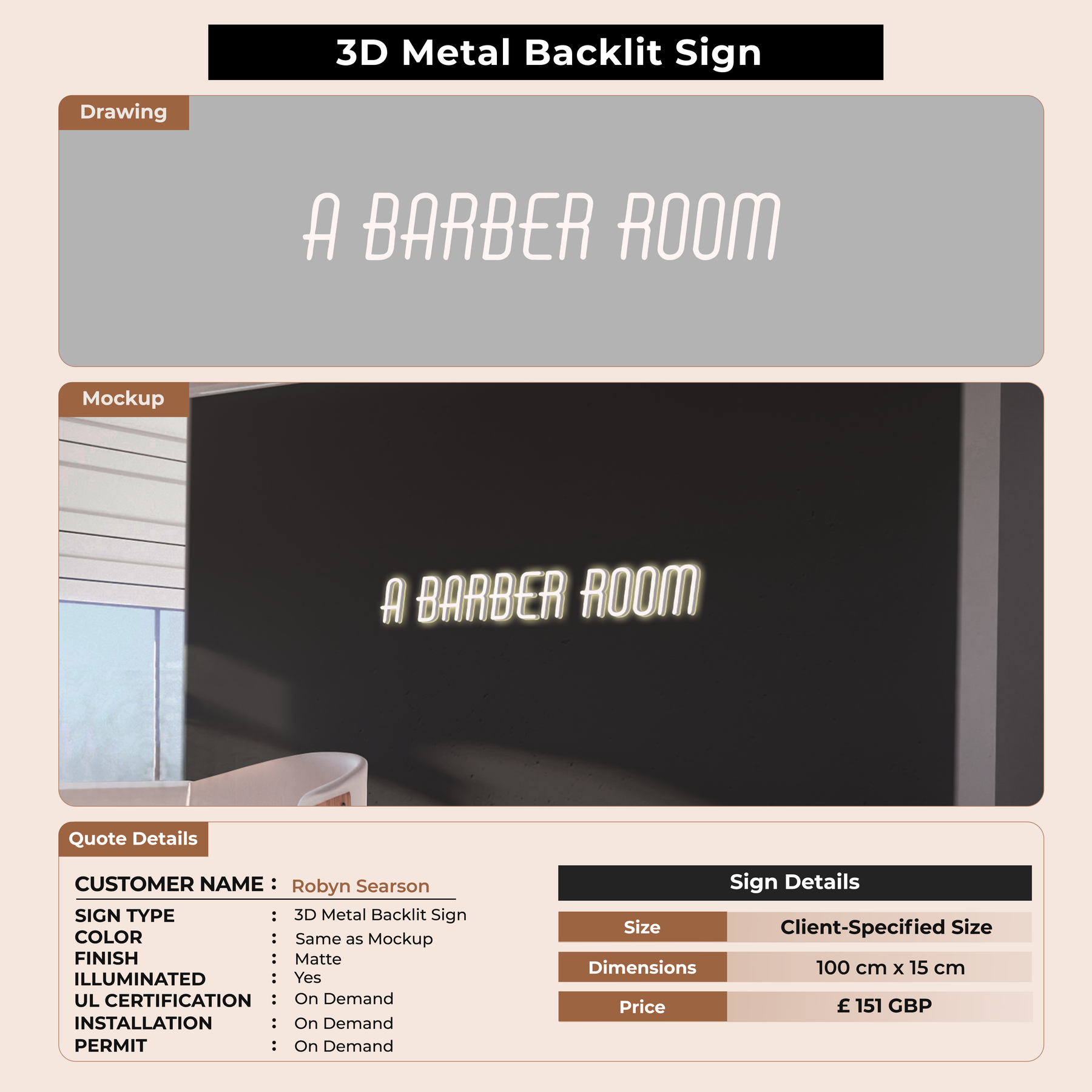 Crafted with premium material, this signage will elevate your business image, precisely mirroring your logo for a professional look.