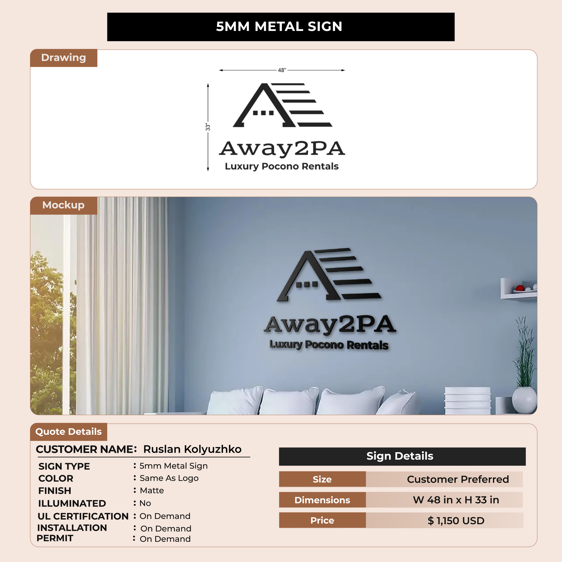 Our signage is designed for minimal maintenance, but we provide care instructions to help keep it looking its best.