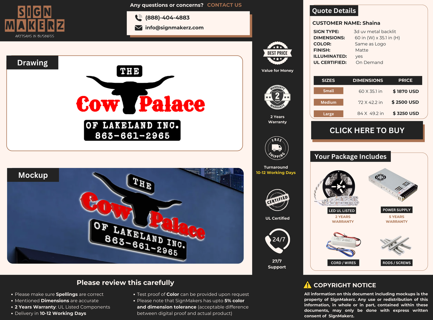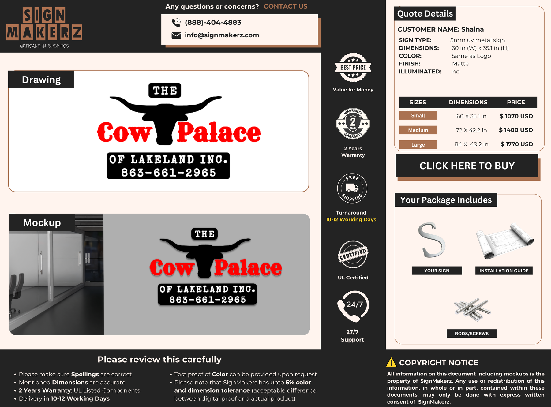 Crafted with premium material, this signage will elevate your business image, precisely mirroring your logo for a professional look.
