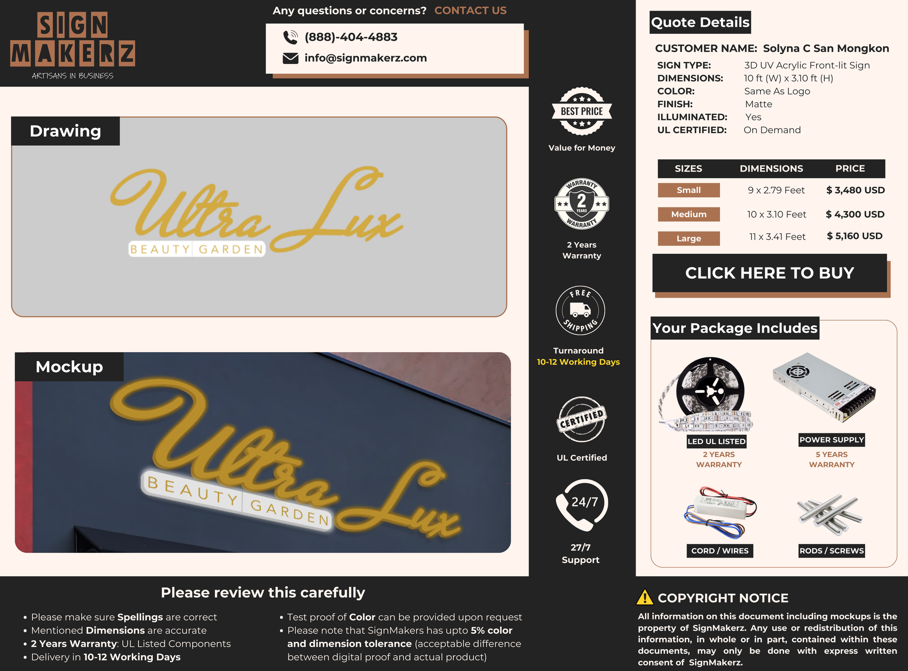 Crafted with premium material, this signage will elevate your business image, precisely mirroring your logo for a professional look.