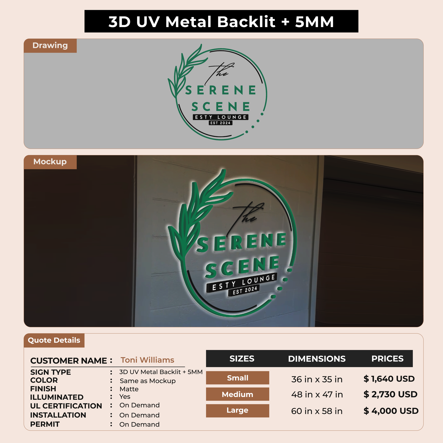 Crafted with premium material, this signage will elevate your business image, precisely mirroring your logo for a professional look.