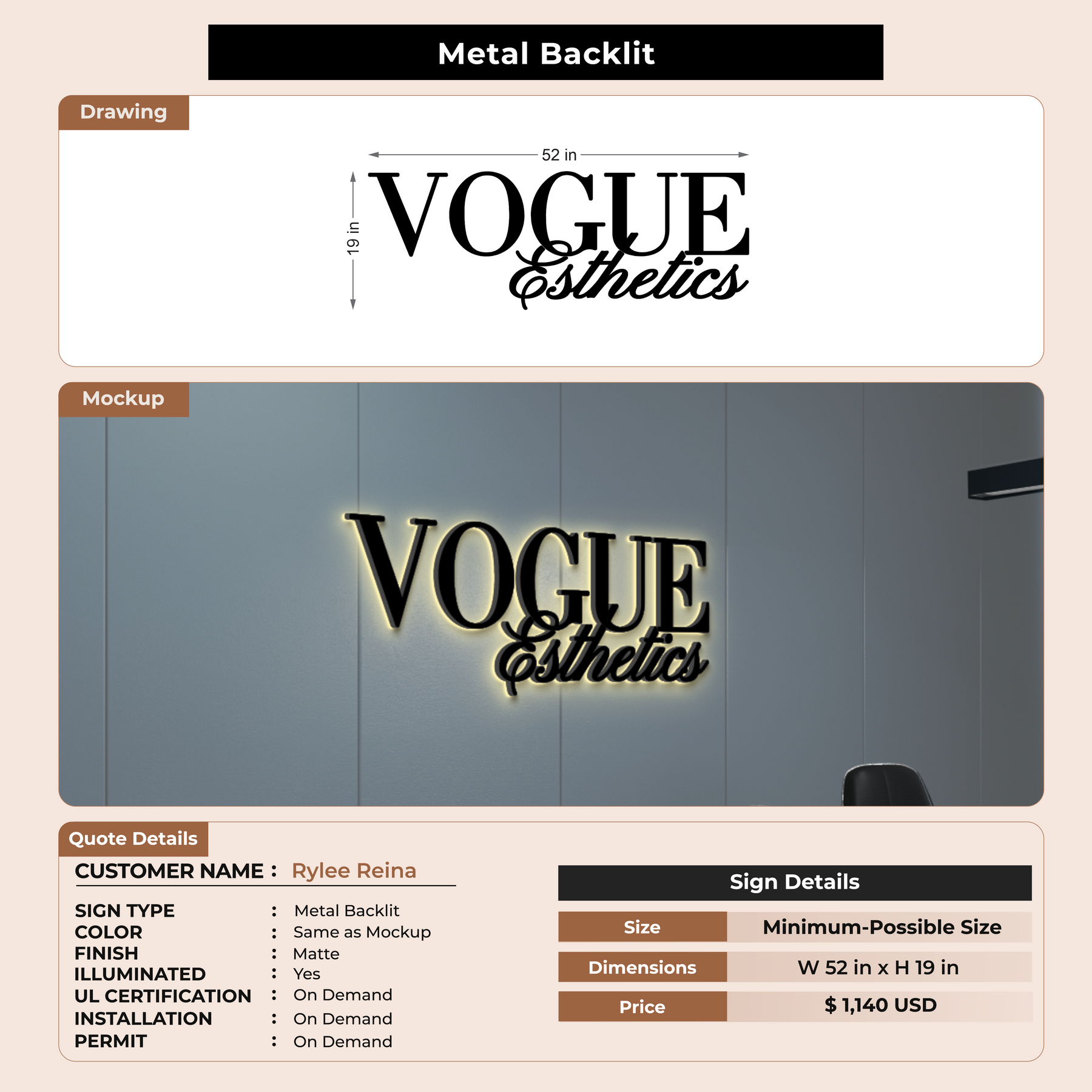 Metal Backlit Sign for Rylee Reina