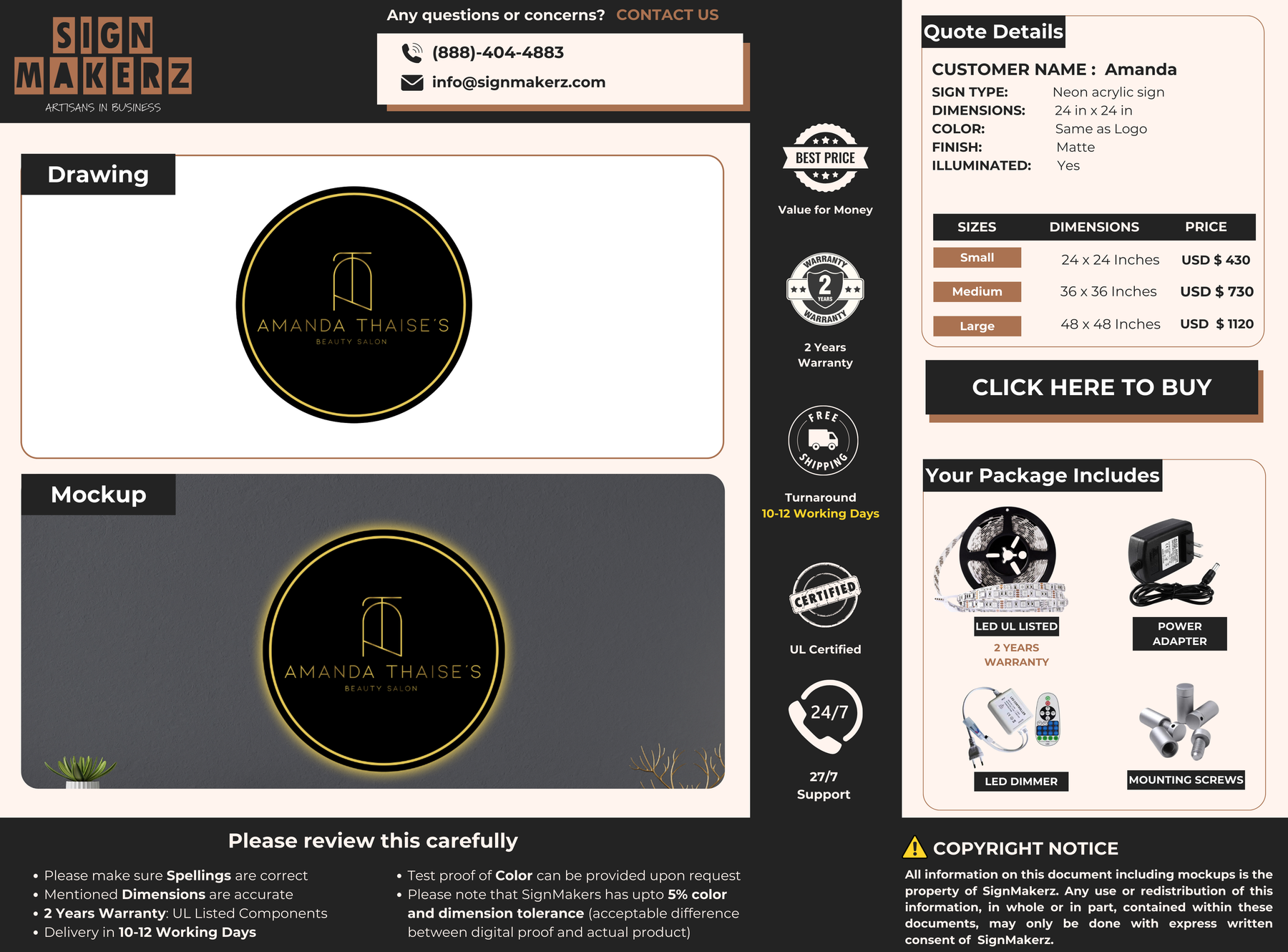 Crafted with premium material, this signage will elevate your business image, precisely mirroring your logo for a professional look.