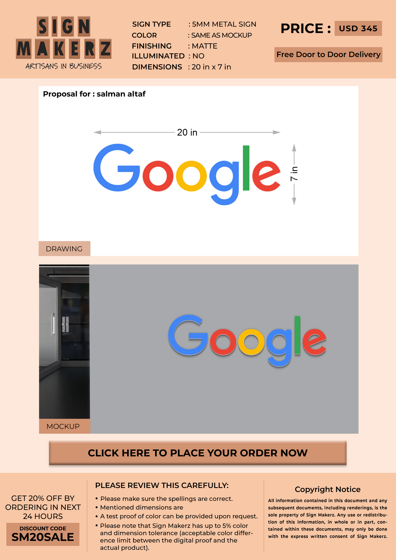 Crafted with premium material, this signage will elevate your business image, precisely mirroring your logo for a professional look.