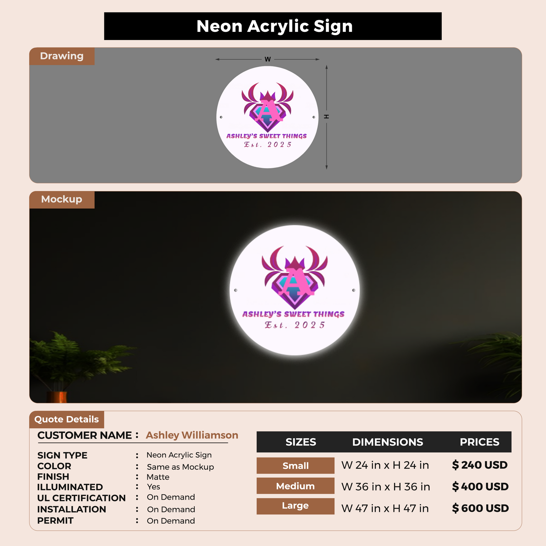 Neon Acrylic Sign For Ashley Williamson