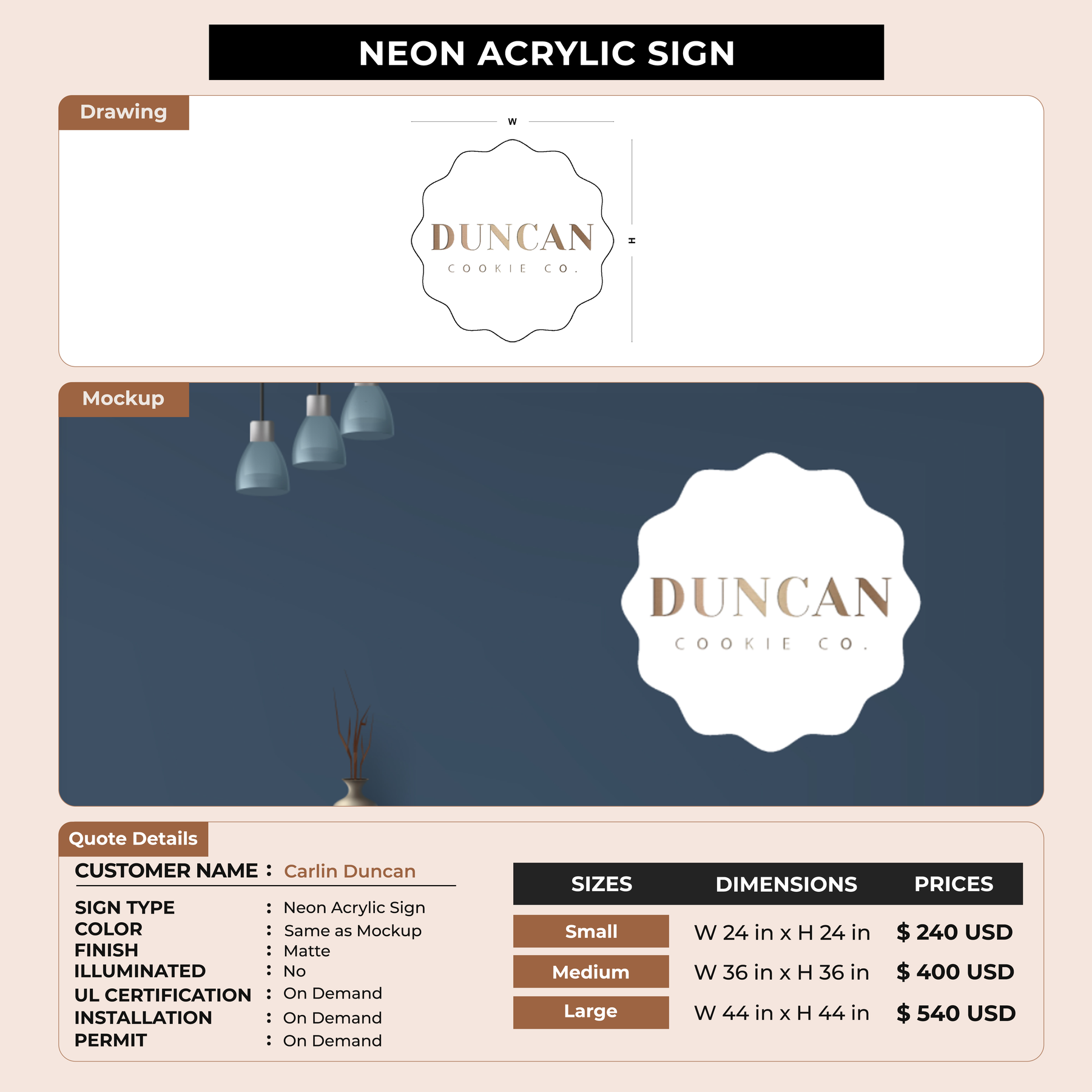 Neon Acrylic Sign for Carlin Duncan