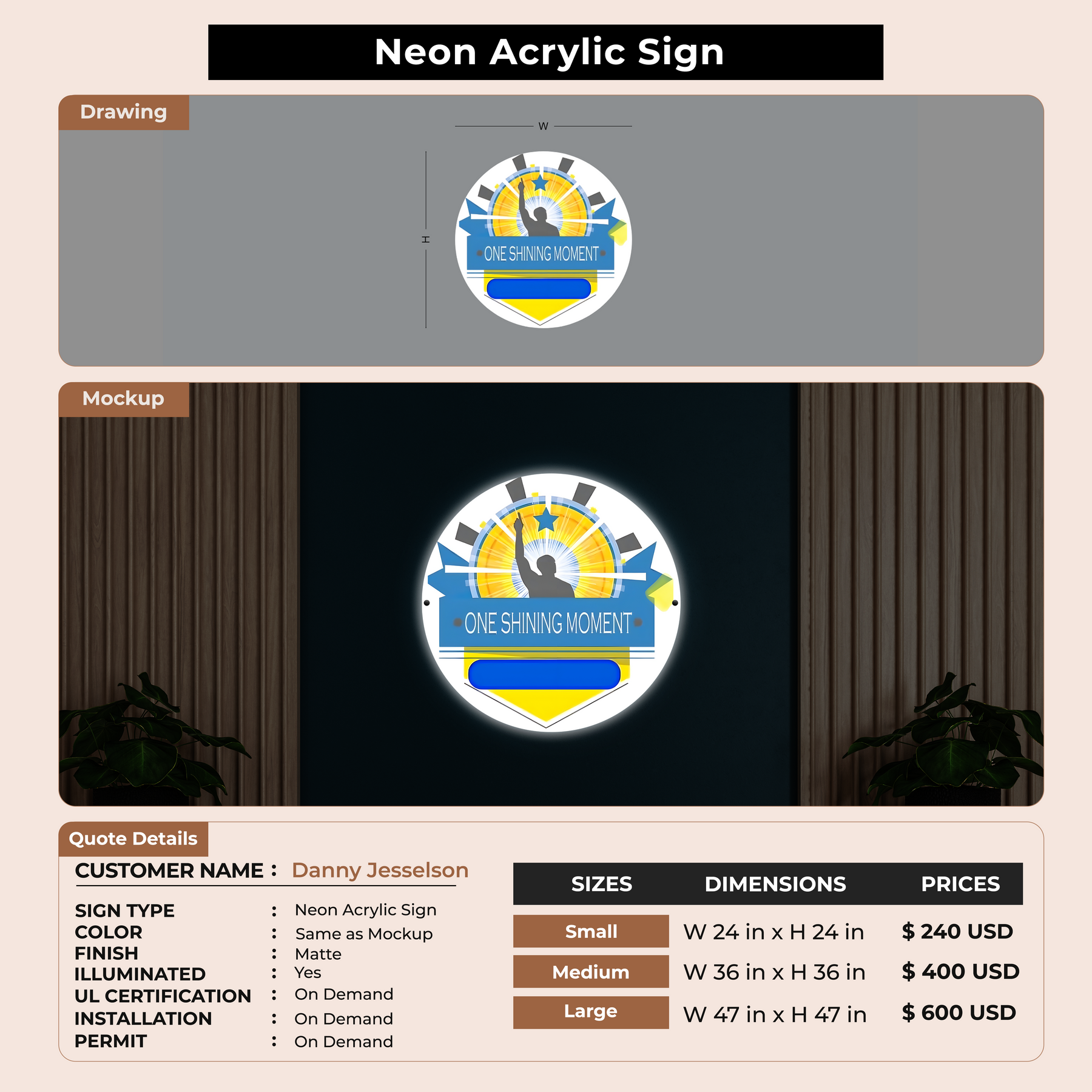 Neon Acrylic Sign for Danny Jesselson