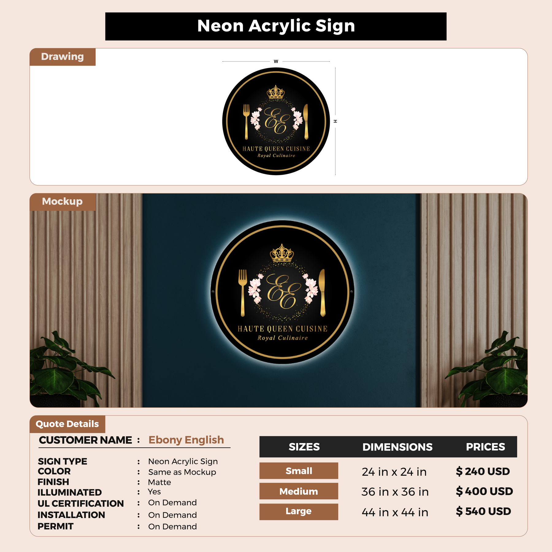 Neon Acrylic Sign for Ebony English