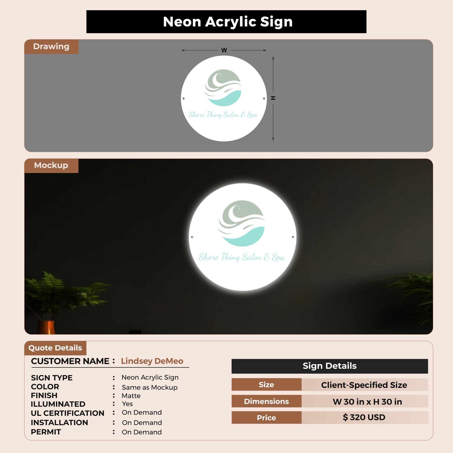 Neon Acrylic Sign For Lindsey DeMeo