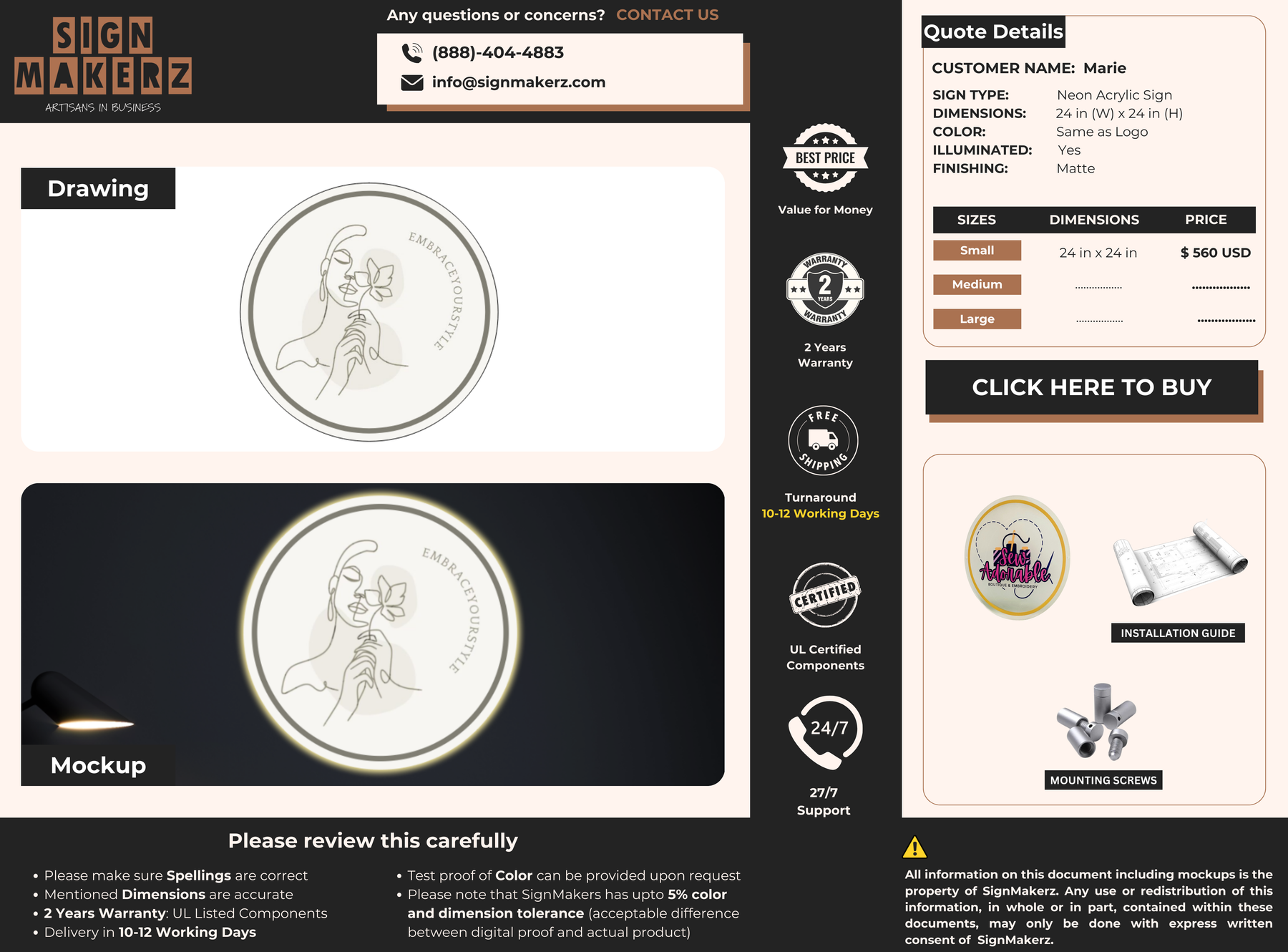 Crafted with premium material, this signage will elevate your business image, precisely mirroring your logo for a professional look.