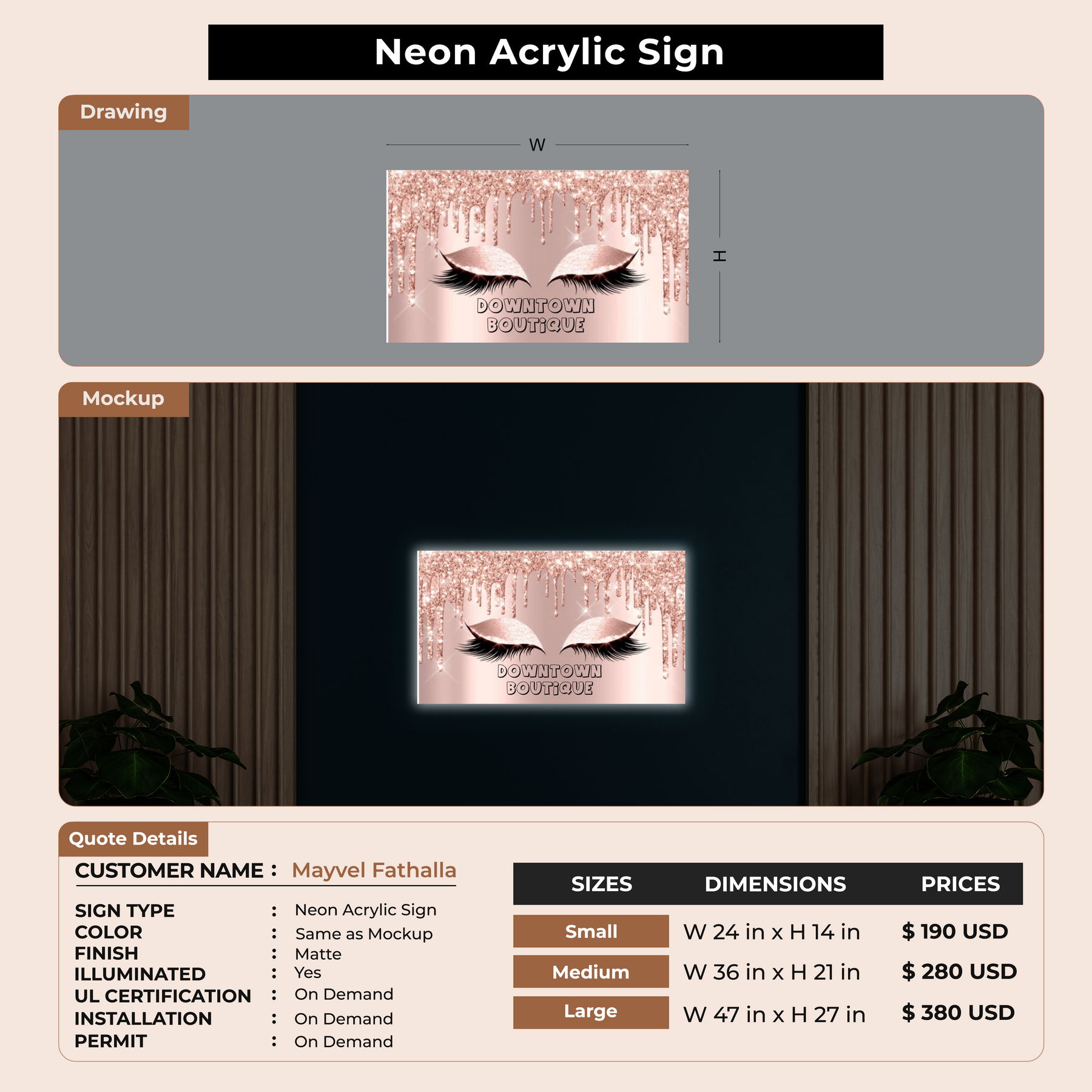 Neon Acrylic Sign for Mayvel Fathalla