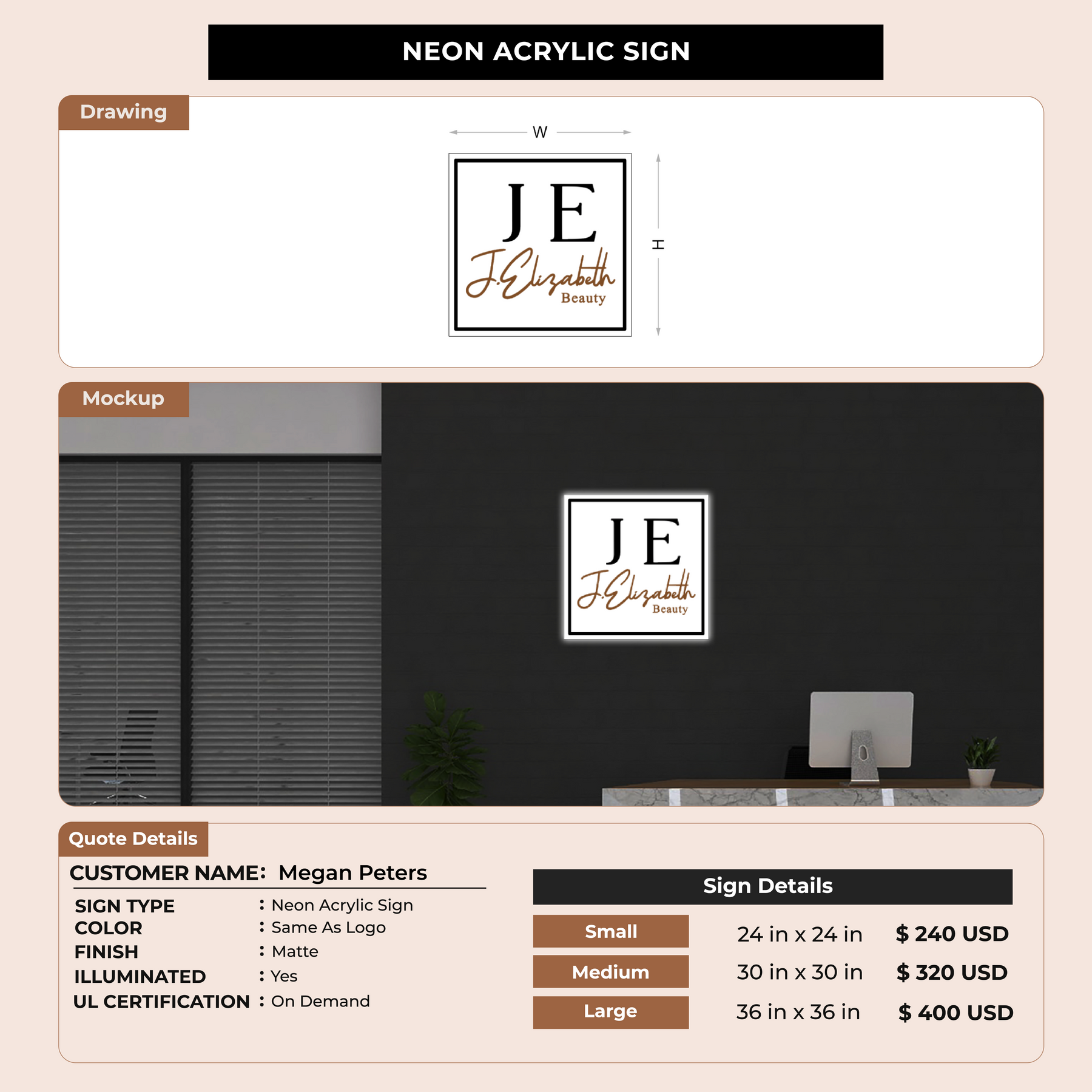 Neon Acrylic Sign for Megan Peters
